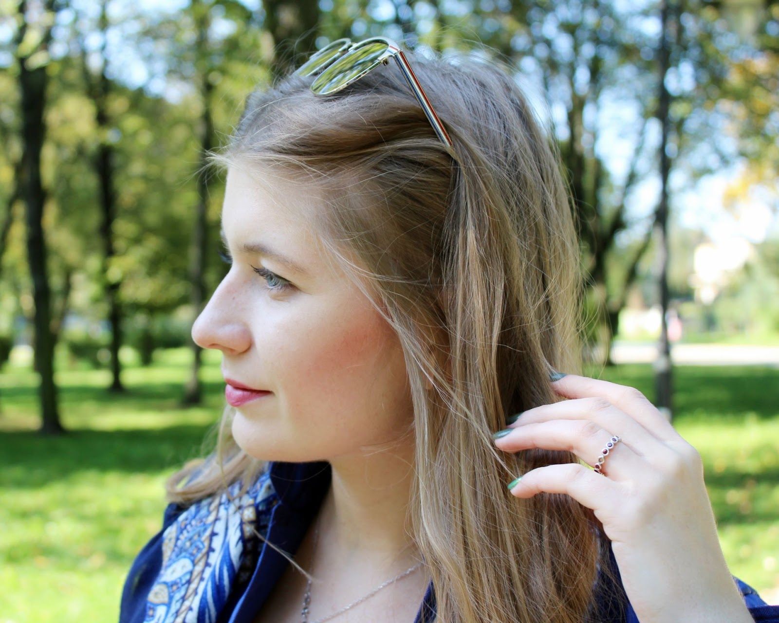 Ostatnio bardzo lubię minimalizm w dodatkach. Tym razem tylko lustrzane okulary przeciwsłoneczne, oczywiście od eOkulary.