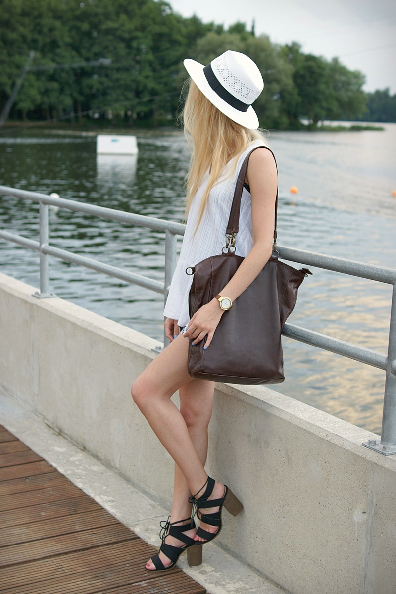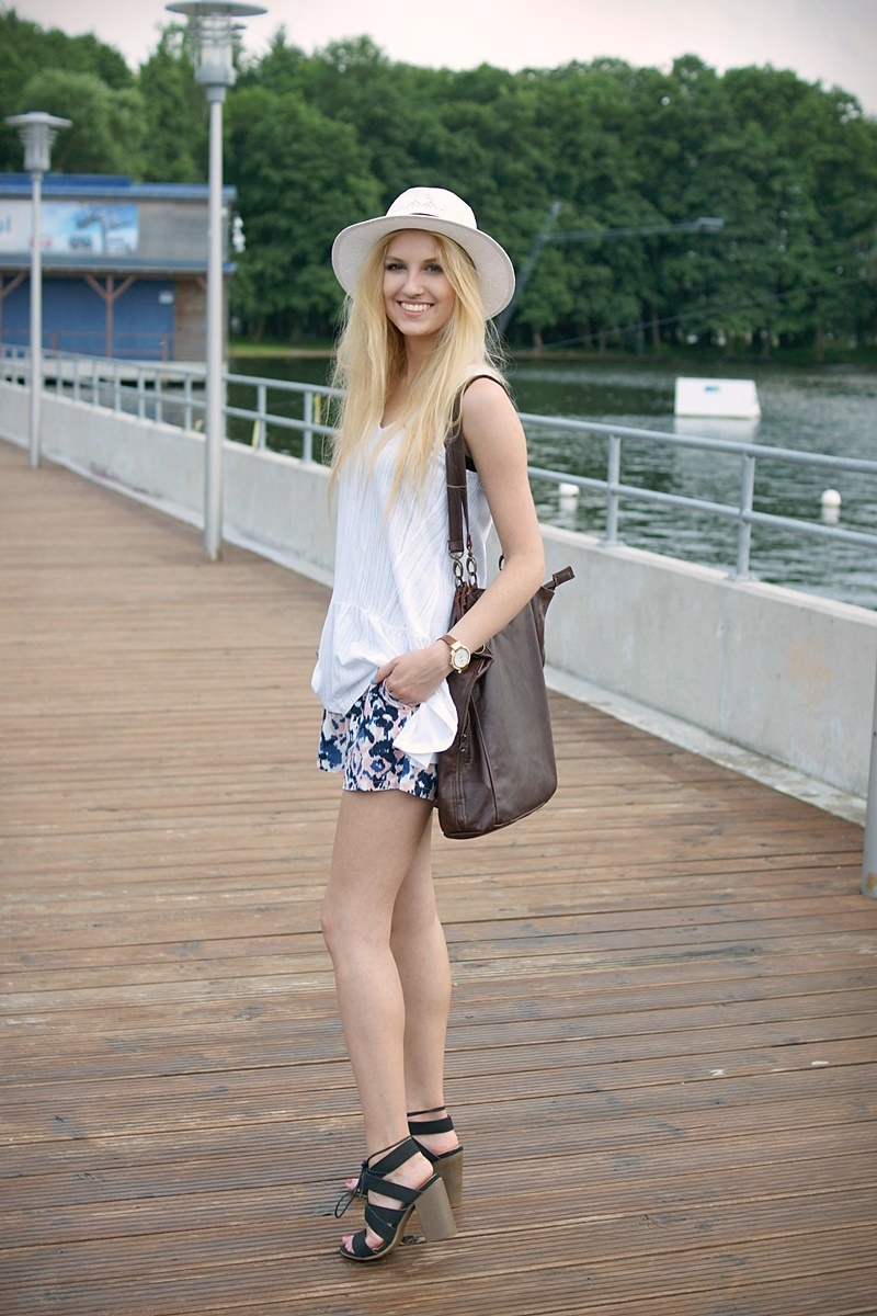 bluzka / blouse - Medicine, spodenki / shorts - Moodo, kapelusz / hat - Medicine, torba / bag - Maja Łagoda, zegarek / watch - TechTime, sandały / sandals - Pantofelek24