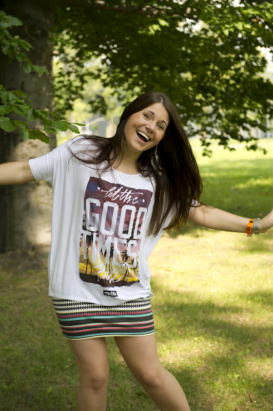 Taki jest też mój strój - kolorowy i radosny. Choć wzory azteckie już się wszystkim troche znudziły, ja nie mogę się rozstać z tą spódniczką :) Nic nie poradzę! Po prostu ilekroć ją widzę mam ochotę ją włożyć :D Idealnie sprawdza się w upały. A w dodatku wprawia mnie w dobry nastrój.