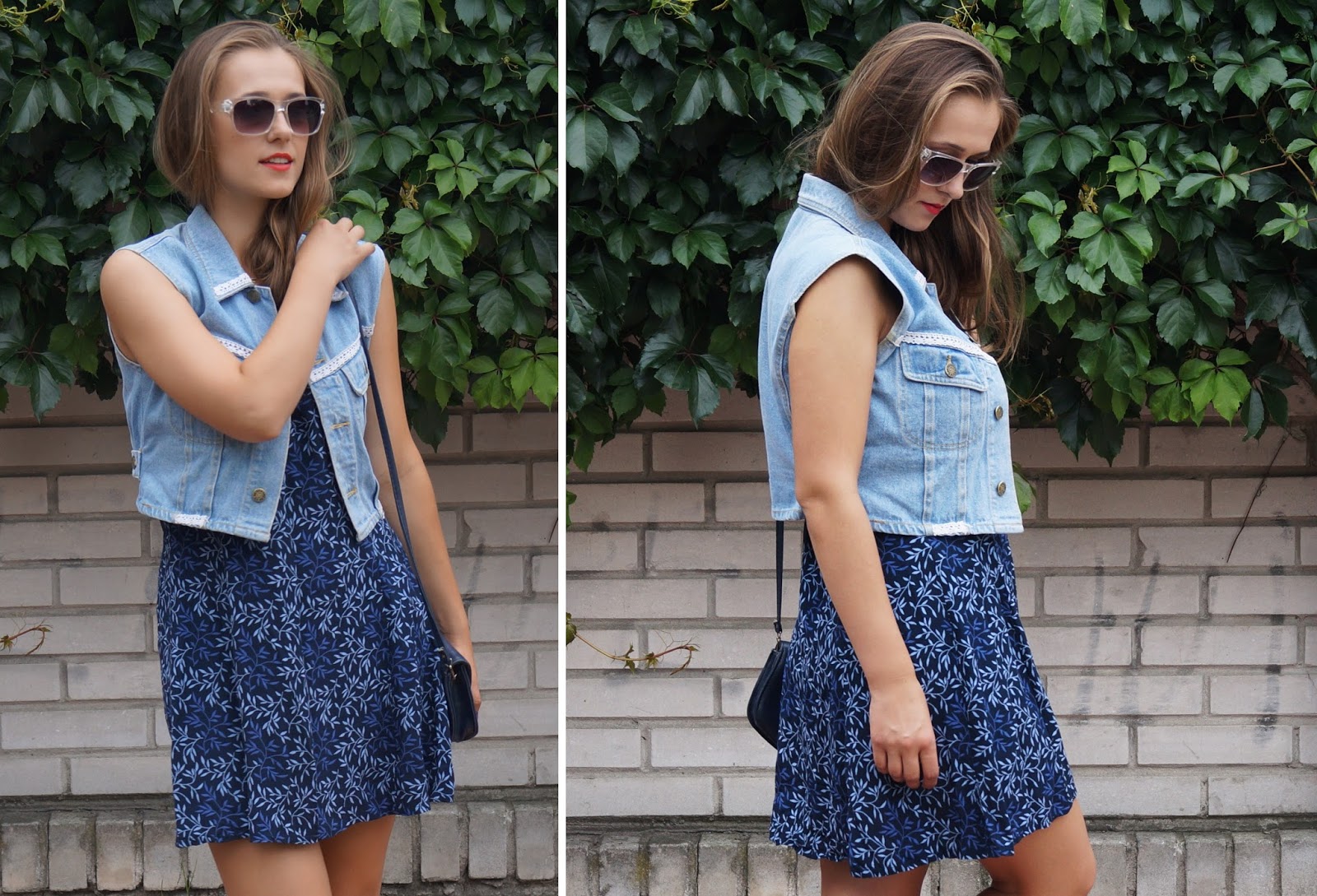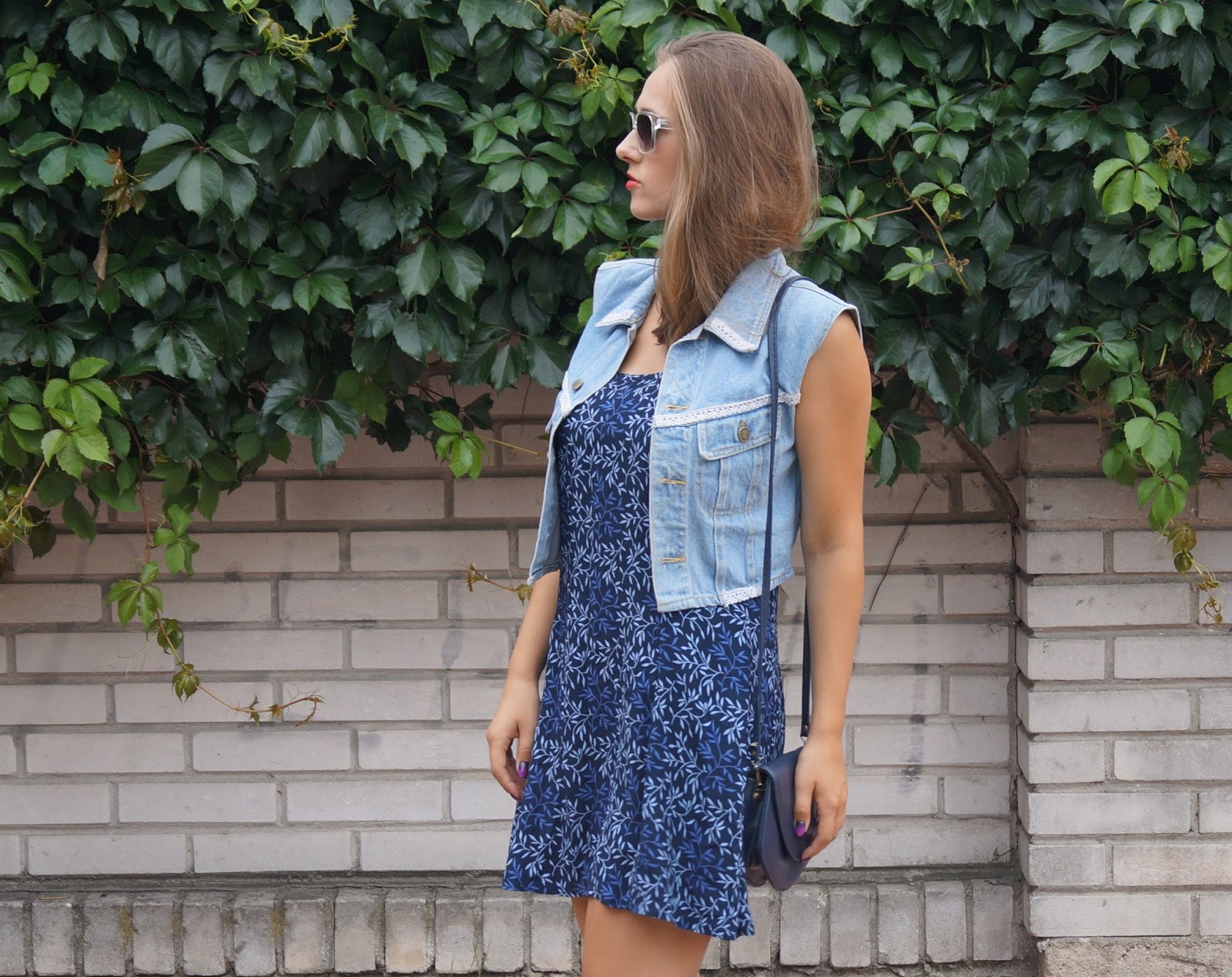 letnia sukienka i jeansowa kamizelka