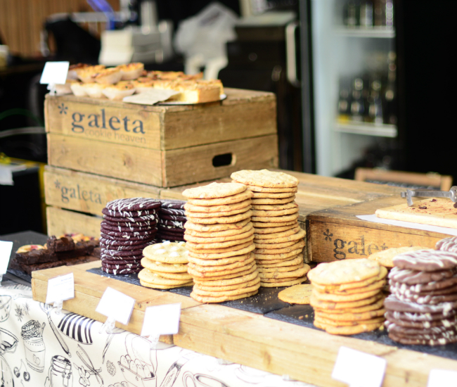 Po przejściu mostu niespodziewanie znalazłam się w raju. Food markets oglądałam nie raz na blogu Uli z The Adamant Wanderer, ale jeszcze nigdy nie miałam okazji się na takowym znaleźć. Świeże składniki, prawdziwe jedzenie przygotowywane na naszych oczach, mieszające się zapachy i kultury wprowadziły mnie w stan ekscytacji. Miałam ochotę spróbować wszystkiego, na szczęście ceny skutecznie mnie powstrzymywały. Najdłuższa kolejka, przeważnie oznaczająca najlepsze jedzenie, prowadziła do stanowiska z kurczakiem tikka masala. Nie chcąc fundować dziewczynom półgodzinnego oczekiwania na zaspokojenie moich kubków smakowych zdecydowałam się jednak na chorizo roll. To była najdroższa i najlepsza kanapka w moim życiu. W drodze do hostelu, mijając urocze londyńskie domki z kolorowymi drzwiami układałam w myślach poemat o rozpuszczającym się w mych ustach cheddarze, karmelizowanej cebuli i chrupiącej bułce. Nie żartuję!