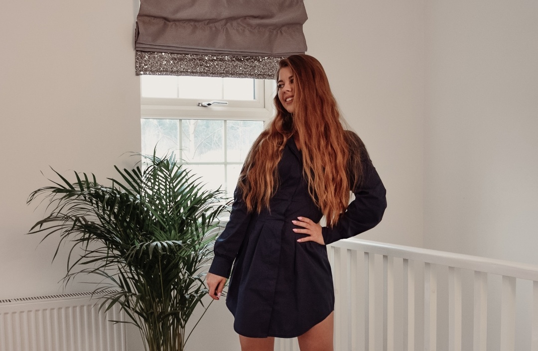 Dziś chciałabym Wam pokazać jedną z czterech rzeczy z tego sklepu.Jest to koszulowa sukienka (rozmiar 6). Przód i tył ma krótszy, natomiast po bokach jest bardzo mocno wycięta i muszę Wam powiedzieć, że delikatnie mi to przeszkadza. Do kryjących rajstop mogłabym ją założyć, jednak przy gołych nogach czułabym się niekomfortowo. Sklep Femme Luxe ma to do siebie, że rzeczy stamtąd są niezwykle kobiece, więc ten "zabieg" z wycięciami po bokach na pewno jest zamierzony :)