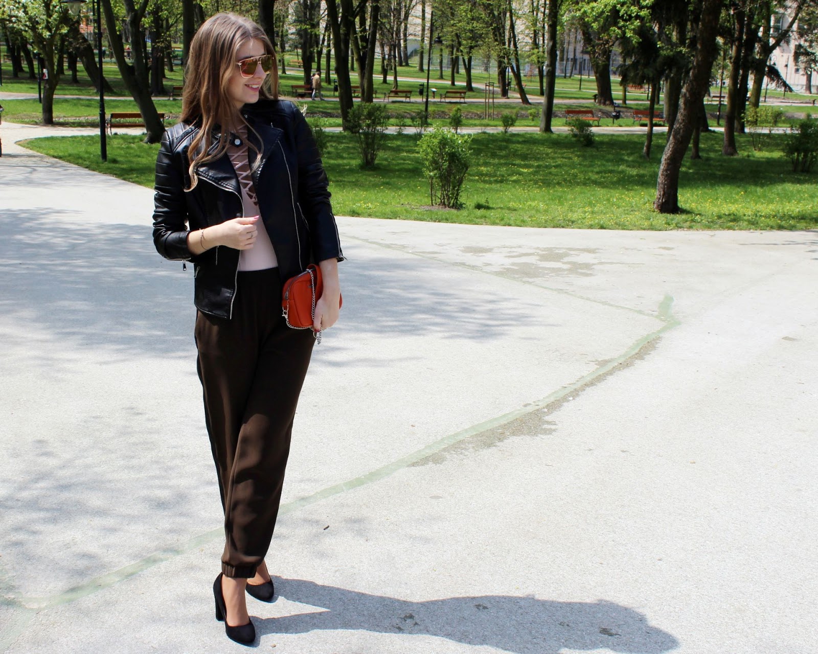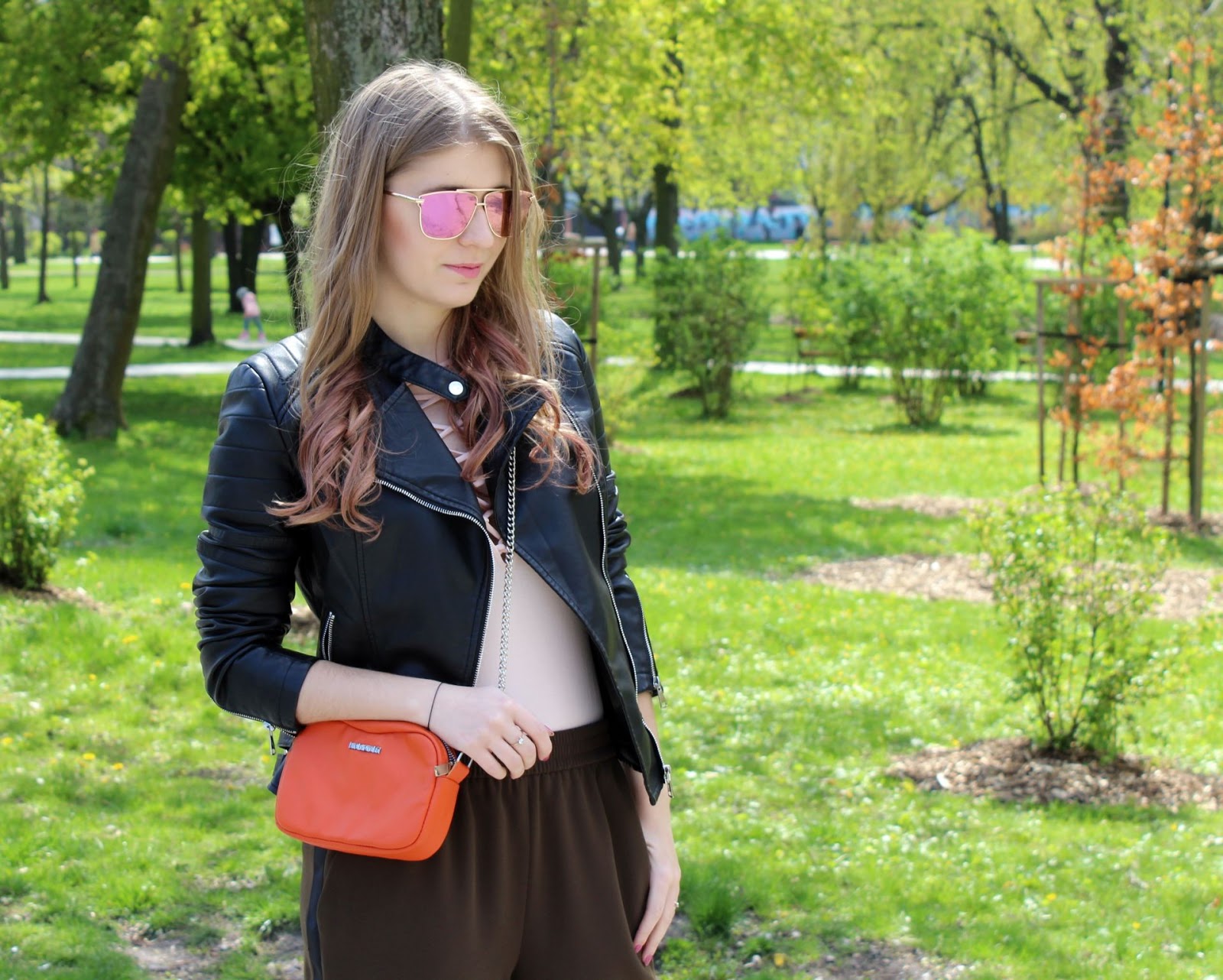 Jeszcze kilka słów o dzisiejszej stylizacji. Jedne z wygodniejszych spodni- luźne, komfortowe i bardzo fajnie się prezentujące- w połączeniu z pudrowymi bodami i ramoneską od Denley. Idealne okrycie wierzchnie wiosną, na pewno nie zabraknie jej ze mną w Londynie. Zrezygnowałam całkowicie z dodatków, zdecydowałam się tylko na okulary przeciwsłoneczne z najnowszej kolekcji HAMMER, dostępnych na eOkulary. Idealnie pasują do góry zestawu, a także podbijają kolor końcówek na włosach, które sobie ostatnio zafundowałam. Skorzystałam z oferty L'Oreal Colorista, wybrałam odcień #DIRTYPINK i ufarbowałam same końcówki. Efekt wyszedł naprawdę ciekawie, włosy nabrały delikatnego odcieniu różu :)