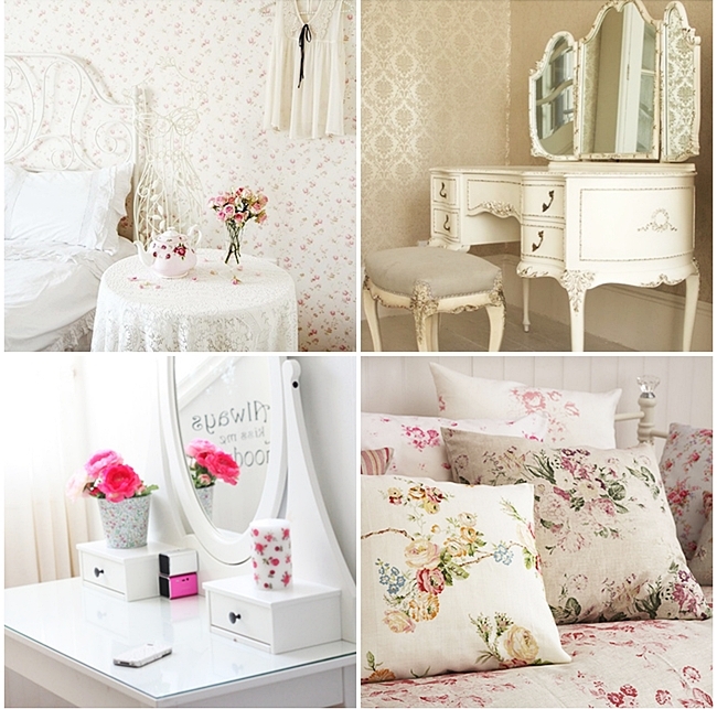 Tematem dzisiejszej notki, jest moje wielkie marzenie, które już niedługo się spełni. Od dłuższego już czasu marzę o pięknym wystroju swojego pokoju i choć nie mam ogromnych zdolności do urządzania, mam swoje wizje i pomysły, które już wkrótce wejdą w życie. Jestem taka podekscytowana! Chciałabym się z Wami podzielić moimi odczuciami i wizjami pokoju, którego niedługo przyjdzie mi urządzać. Będzie w nim na pewno jasno! Chciałabym by pokój zachowany był w białych i pastelowych kolorach, z elementami delikatnych kwiatków. Uważam, że pudrowe kolory i motyw kwiatów nie jest ani trochę dziecinny mimo iż przypomina wystrój 'pokoju księżniczki'. Styl barakowy czy angielski choć charakteryzuje się ogromnym przepychem barw, kwiatów i falbanek, to zdecydowanie skradł moje serce i z pewnością wprowadzę go do mojego zakątka. Na baldachimy, toaletki i pastelowe akcesoria również znajdzie się miejsce natomiast miejsca na ciemne kolory już nie będzie. Ciemniejsze barwy będą znajdować się tylko w dużej szafie z ubraniami, ponieważ czarne elementy garderoby po prostu uwielbiam ;). Poniżej przedstawiam Wam kilka inspiracyjnych zdjęć wnętrz, które bardzo mi się podobają. Żadne z nich jednak nie oddaje obrazku mojego pokoju, który ja już mam w swojej głowie. Efekt końcowy zobaczycie dopiero za jakiś czas jeżeli oczywiście będziecie chcieć. Każdy element pokoju będzie zaprojektowany zgodnie z moim planem i ze szczególną uwagą :). Będzie tak jak sobie wymarzyłam!