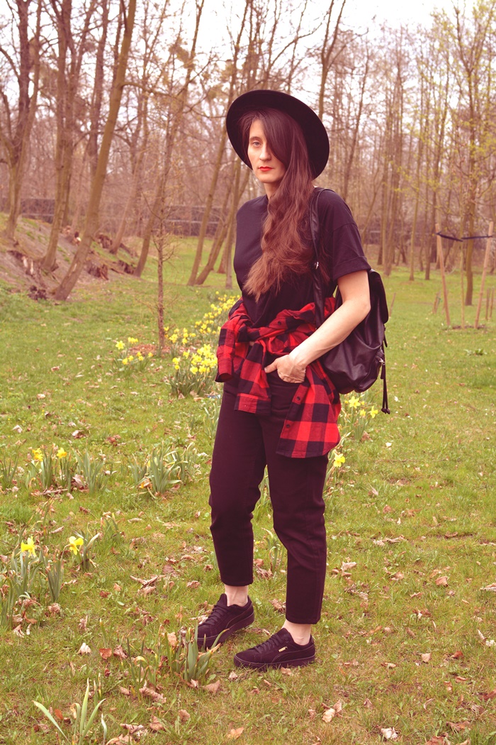 OBSADA: Robotnicza koszula, ulubiony element grunge'owych bandów z Seattle ;) - H&M Spodnie zwane później MOM-sami - Stradivaruis Plecak ucznia na wagarach - H&M Wiązany t-shirt - Stradivaruis Adidasy ale z Pumy - Puma