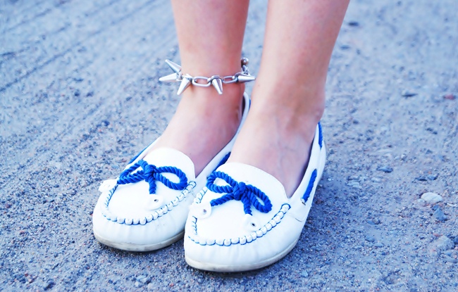 U mnie trochę się rozpadało, a ja mam dla Was kolejny letni zestaw. Nazwałam go marynarski look, bo właśnie tak mi się kojarzy. Lato, morze i jacht. Przekornie na kostkę założyłam kolcową bransoletkę.:) Mokasyny marzyły mi się już jakiś czas, więc wkońcu się w takie zaopatrzyłam.:)