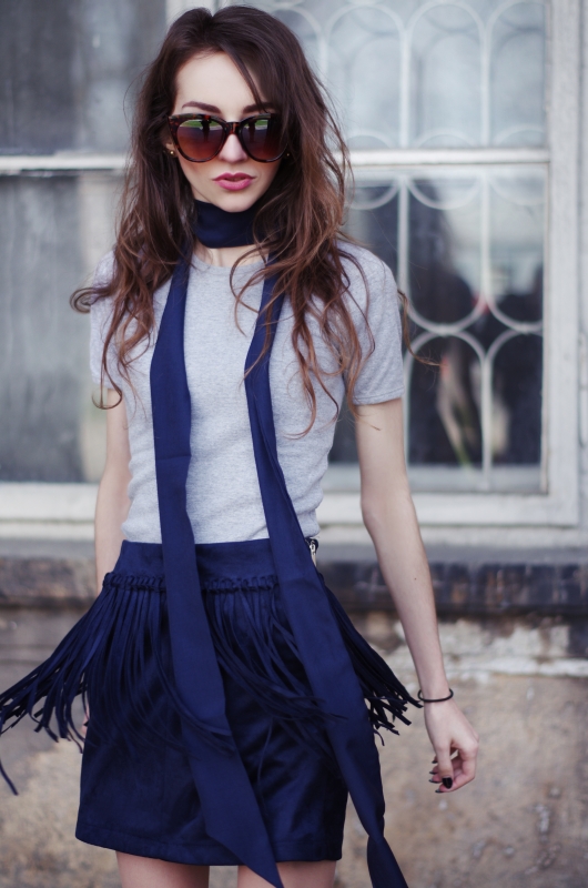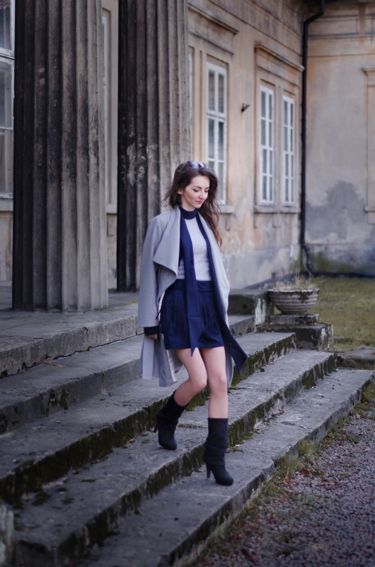 I tutaj z pomocą w poszukiwaniu idealnego, wiosennego płaszcza przyszła mi Insegna, nowa marka odzieżowa powstała na śląsku, która zaprosiła mnie w swoje progi. Asortyment pełen kobiecej klasyki umiejscowionej w najnowszych trendach nie pozwolił wyjść mi stamtąd tylko z płaszczem:) Spódnica w pięknym kolorze granatu, ozdobiona frędzlami świetnie wpisuje się w powrót trendu boho/etno/folk, który widzicie dzisiaj u mnie w nowoczesnym i miejskim wydaniu.