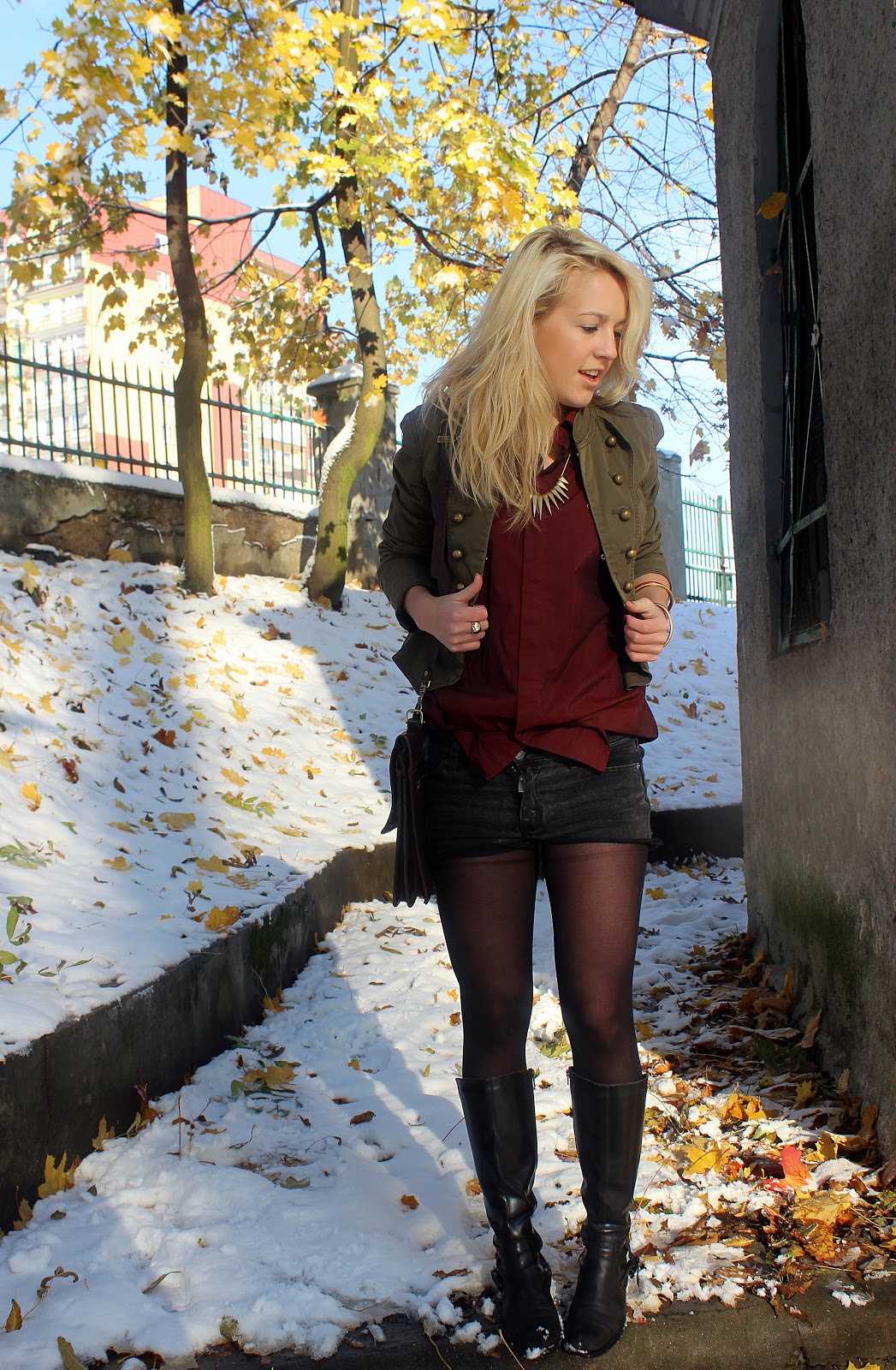ramoneska ZARA / koszula ,torba sh / buty HUMANIC / biżuteria house , h&m / spodenki sh + DIY