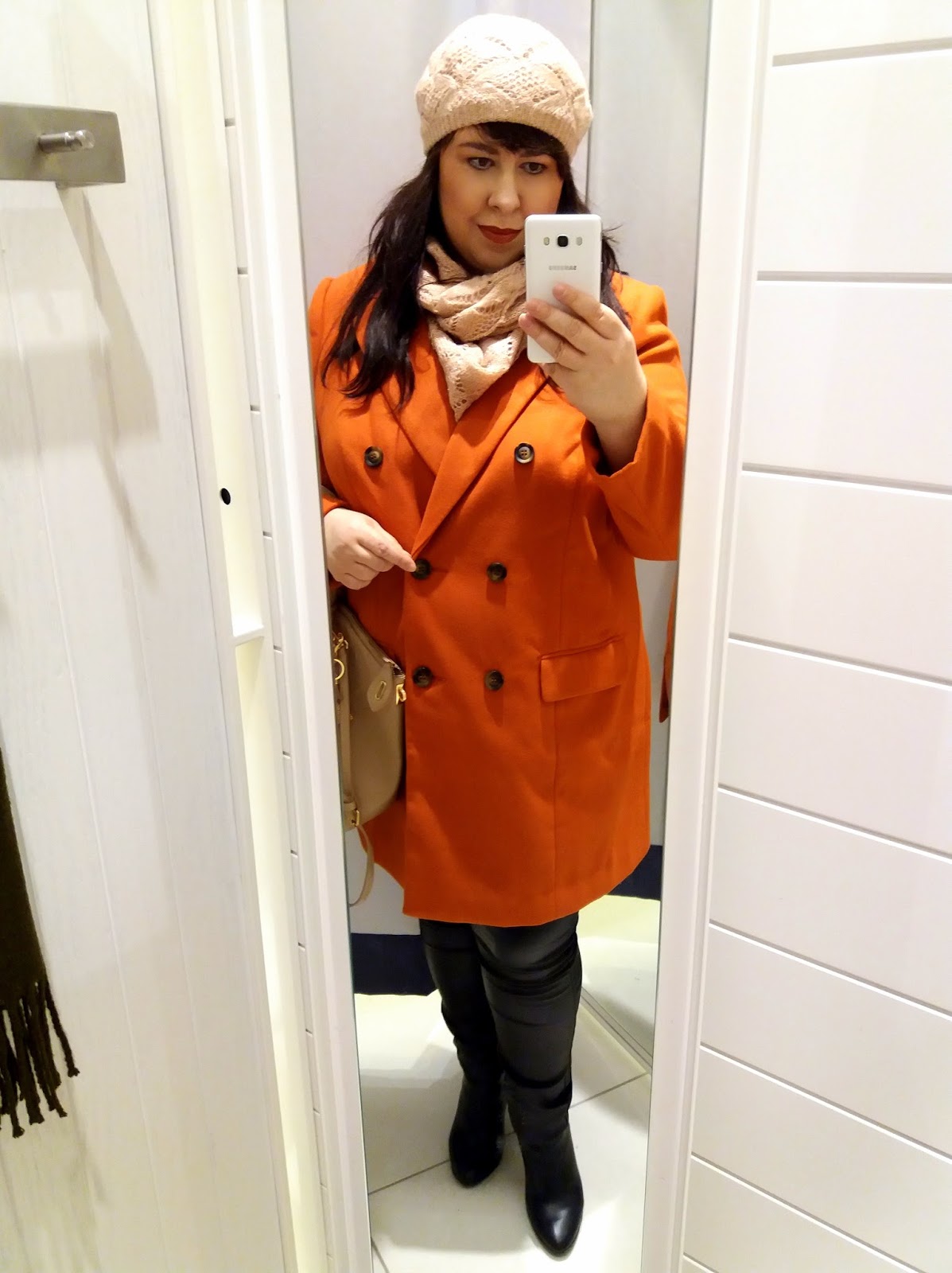 Uwielbiam ten rudy płaszczyk. Myślę, że doskonale wygląda z pudrowym różem i beżem w odcieniu nude.