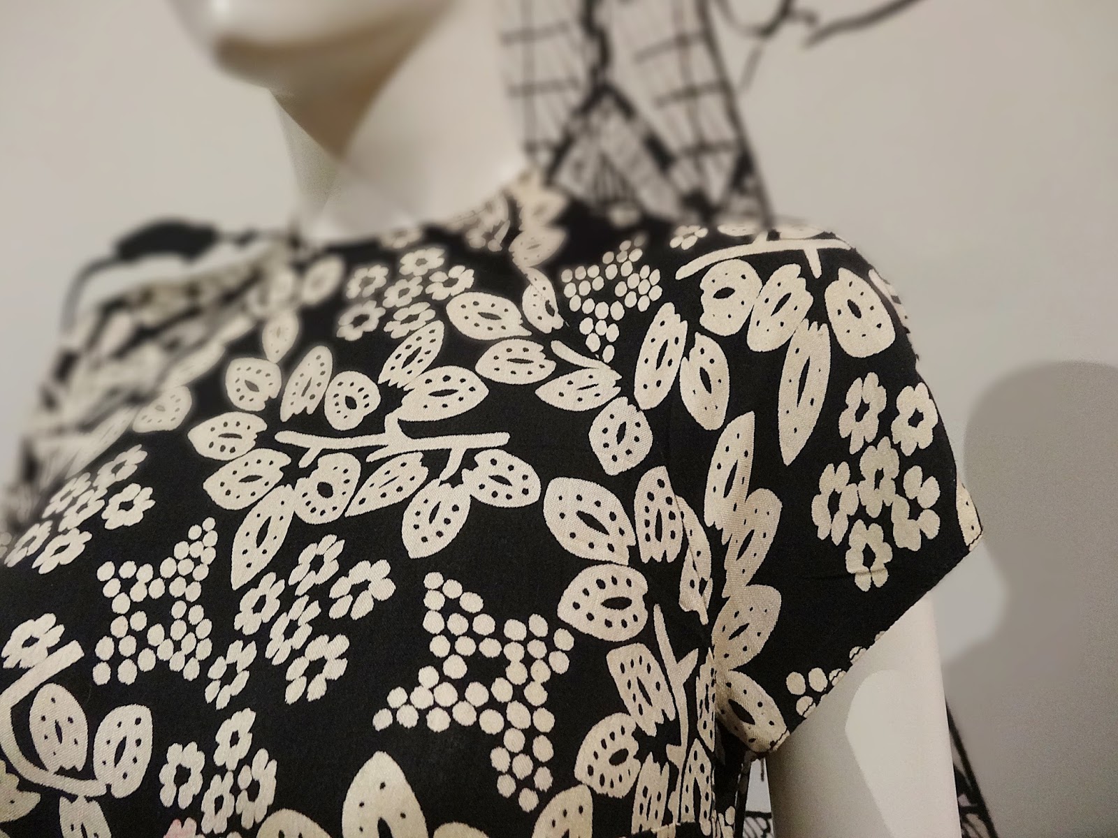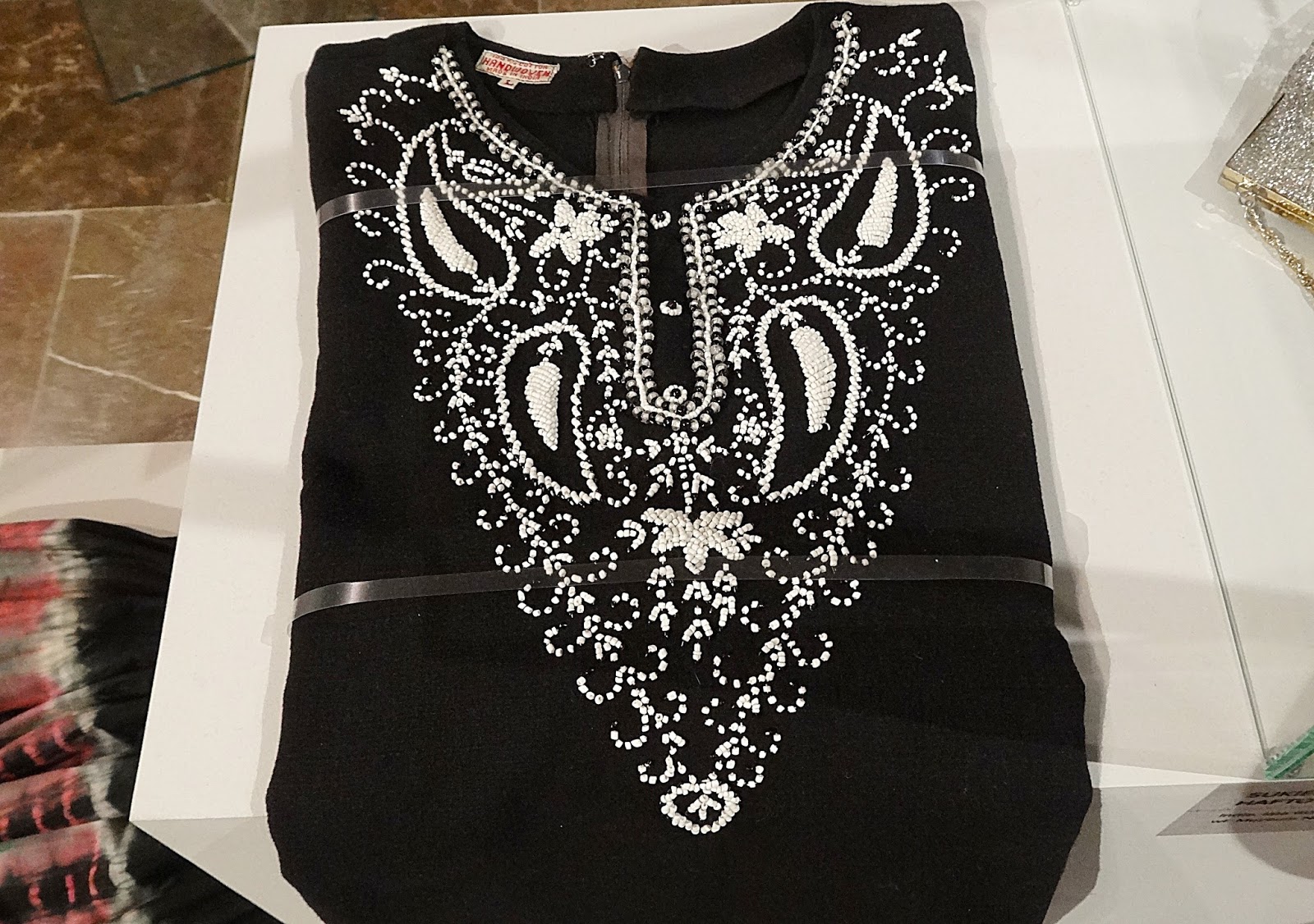 Spójrzcie na tę tunikę wyszywaną koralikami. Pamiętacie sklepy indyjskie? Oprócz egzotycznego zapachu znaleźć w nich można było lekkie, powłóczyste i bardzo kolorowe sukienki, tuniki. To własnie eksponat z tamtych lat wyprodukowany w Indiach. Dzisiaj założyłabym ją do białych spodni.