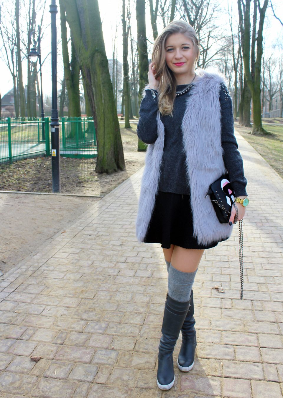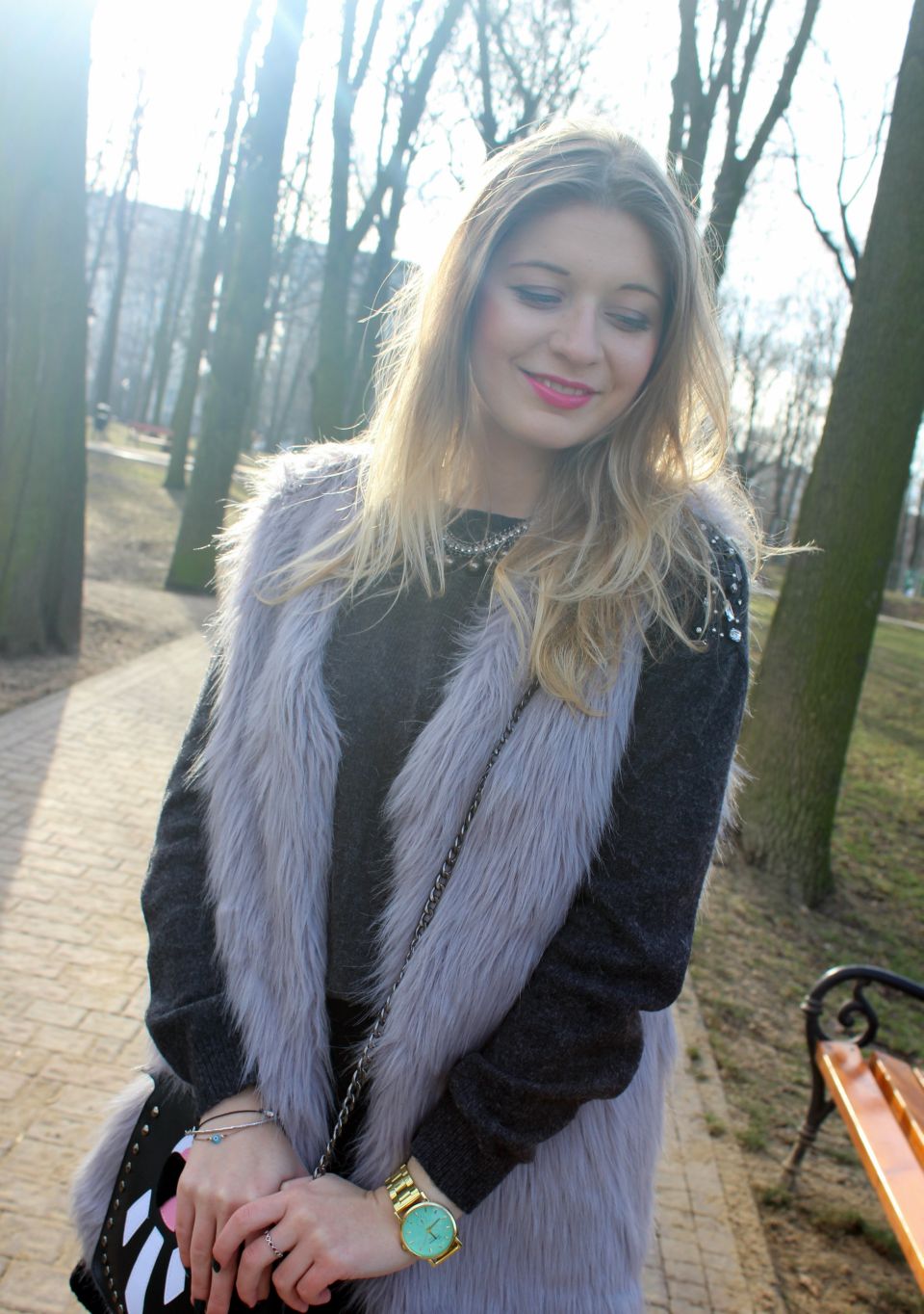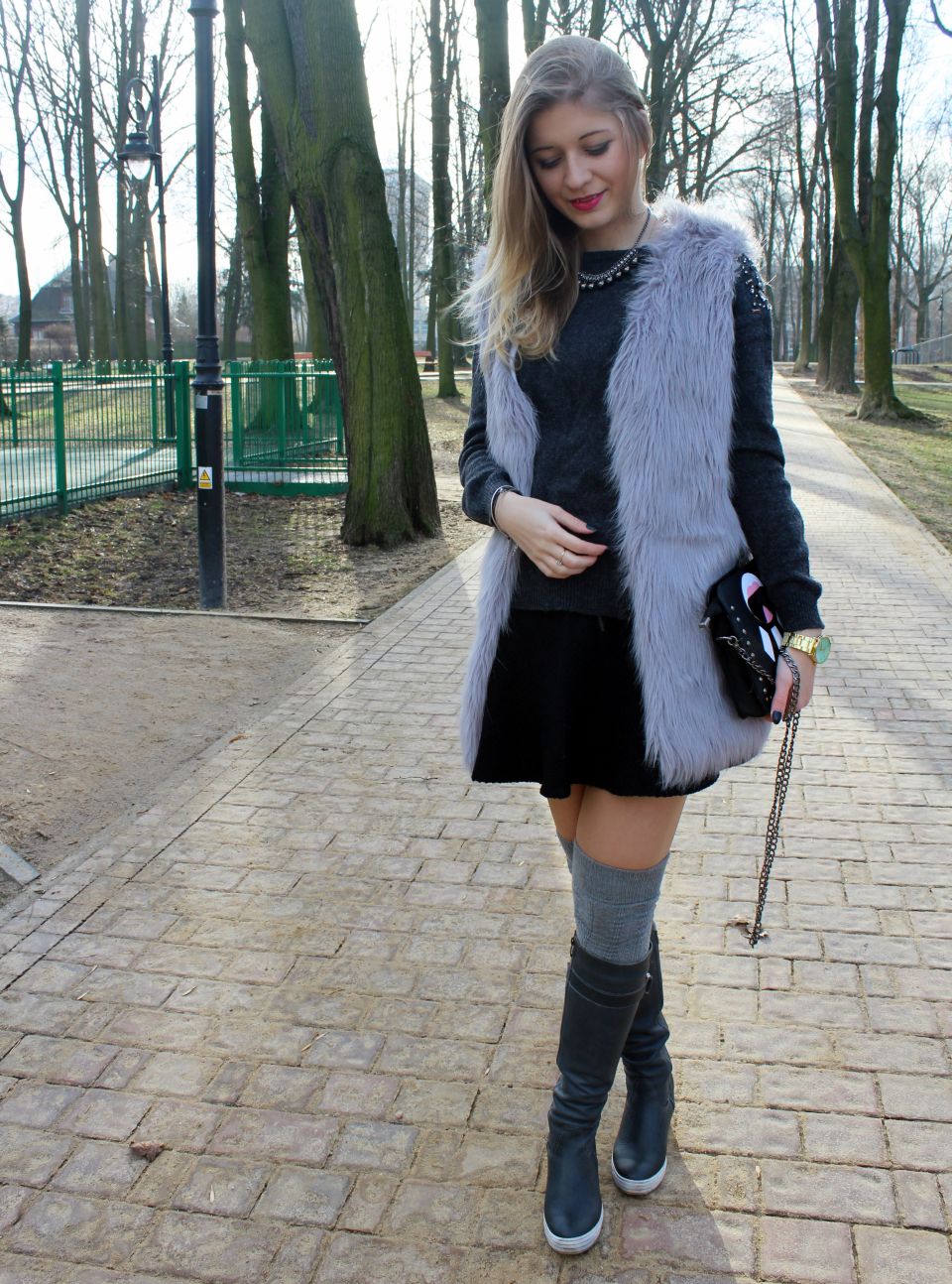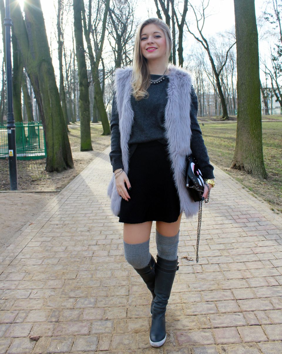 Zobacz oryginał sob., 06/02/2016 - 10:42Cześć Modomaniaczki! Dzisiaj stylizacja w odcieniach szarości! Zima zimy nie przypomina, dlatego można troszkę zaszaleć z warstwami ;) Do dobrze Wam już znanego futrzaka dobrałam najnowszy łup z wyprzedaży- czarną, asymetrycznie kloszowaną spódniczkę od Medicine i szary, milusi sweterek Orsay. Ważną rolę w dzisiejszym look-u grają dodatki. Mowa o najnowszym naszyjniku od BornPrettyStore, który świetnie pasuje do wielu stylizacji ;) Znajdziecie go tutaj -> KLIK ;) A także zegarek od Sophie Boutique, który delikatnie ożywia całość. Miętowa tarcza bardzo fajnie się wyróżnia ;) Na sam koniec torebeczka, którą znajdziecie na Lovelywholesale ;)