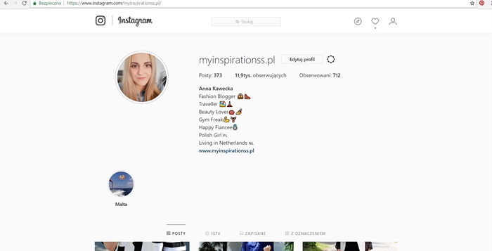 Tutaj moja aktywność jest największa. Ze wszystkich mediów i aplikacji właśnie Insta u mnie wygrywa. Lubię dodawać instastory, lubię publikować zdjęcie z krótkim opisem i najlepiej ze wszystkich moich mediów właśnie tam mogę działać, gdy pod ręką mam wyłącznie telefon.
