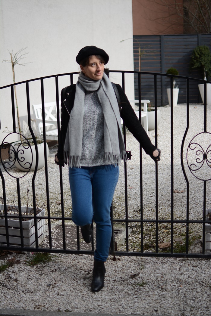 Zobacz oryginał sob., 16/03/2019 - 15:23 Klasyka nie jest moją mocną stroną. Grunge, boho - owszem, w tych klimatach czuję się (a przynajmniej czułam, ale o tym kiedy indziej) jak ryba w wodzie, bo wypływają one wprost z mojego rytmu życia. Co mi gra. Ale klasyka... jakoś nigdy mi nie było po drodze. Co innego moja Prababcia, o której od czasu do czasu tu wspominam. To była klasa sama w sobie. Prawdziwa Dama. Pamiętam jej bordowy total look: płaszczyk, kapleusz, torebkę i sukienkę. Zestaw którego mogłaby nie powstydzić się sama Megan Markle. Można się było dużo nauczyć, ale w owych czasach moje podejście do klasyki było mniej więcej takie: Klasyka. Nuda. Pfff. A po co? Stasze panie. Konserwatyzm. I tylko czemu Babcia mówi, że wyglądam jak szmoder? Nova Moda Moder Szmoder... "Moder Szmoder, Moder Szmoder....Moder Ever Never Szmoder. Babcia!!! Jaki szomder?!! Te spodnie są specjalnie podarte, a teraz leje na nie wybielaczem! To jest rock'n roll a Ci Panowie z plakatu to Scorpions'i." *** A dziś, gdy tego świata już nie ma przed każdym wyjściem dopada mnie trema Czy trzeba przyjść elegancko ubranym by przez współgości nie zostać wyśmianym? Eh, gdybym wtedy wyraźniej słuchała to dzisiaj klasyki bym się nie bała... Problem lecz w tym, że wcale nie słuchałam, bo wszystkie rozumy wówczas pozjadałam... Tu będzie morał, tak jasny jak Słońce, że każdy kij modowy posiada dwa końce... ;) Rockowy i klasyczny... I jak na rockowym człowiek się zasiedzi, to tego klasycznego nigdy nie odwiedzi... :) *** A ja wbrew temu próbuję niezdarnie przepełznąć z jednego końca tego kija na drugi. Nie po to, by na nim zapuścić korzenie, ale dobrze go poznać i wreszcie usadowić się w pewnym miejscu - niekoniecznie po środku kija :). Nie poddaję i jak widzicie ciągle walczę :D. Bo wiecie, nawet jeśli ubranie jest kwestią małą i błahą, to i tak na miarę możliwości warto się do niego przyłożyć :), bo kto w małych rzeczach jest konsekwentny, ten będzie i w wielkich. A kto małe sprawy potrafi spartaczyć, ten za wielkie niech się nawet nie chwyta. Ot takie mądrości. Moje eksperymenty z umiarkowaną klasyką idą więc w pewną stronę. Jeszcze nie wiem jaką. Beretta i szal nawiązuje do stereotypu ulicznego, paryskiego malarza. Ramoneska, rękawiczki - pilotki i jeansy symbolizują rockowy bunt i ciągle niepokorną duszę ;). Co z tego wyjdzie w przyszłości - zobaczymy :).