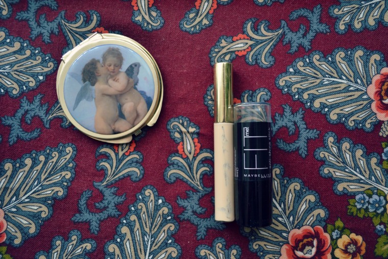 Nie używam więc wielu kosmetyków. Moim stałym elementem makijażu jest płynny korektor pod oczy, który wklepuję żeby zatuszować ewentualne cienie. Na konkretne wypryski (a niestety te zaskakują mnie dość często) punktowo nakładam korektor lub bazę Fit me! od Maybelline, która tuszuje zaczerwienione miejsca. Kiedyś codziennie nakładałam na twarz podkład, ale po kilku godzinach zaczyna on wyglądać niefajnie po prostu, więc schowałam go do szuflady.