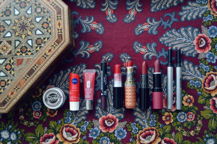 Przy niewielkiej ilości kosmetyków, moja kolekcja szminek jest dość pokaźna. Jednak różnice między poszczególnymi kolorami są dość subtelne i tym też uzasadniam ich ilość (nie mówiąc już o tym, że niektóre są matowe, inne błyszczące itd.). W każdym razie usta w ciemnym kolorze, to podstawa mojego makijażu.