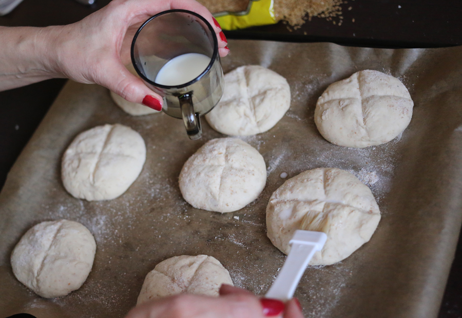 5. Bułki układamy w odstępach na posypanej mąką blasze i odstawiamy w ciepłe miejsce do wyrośnięcia.