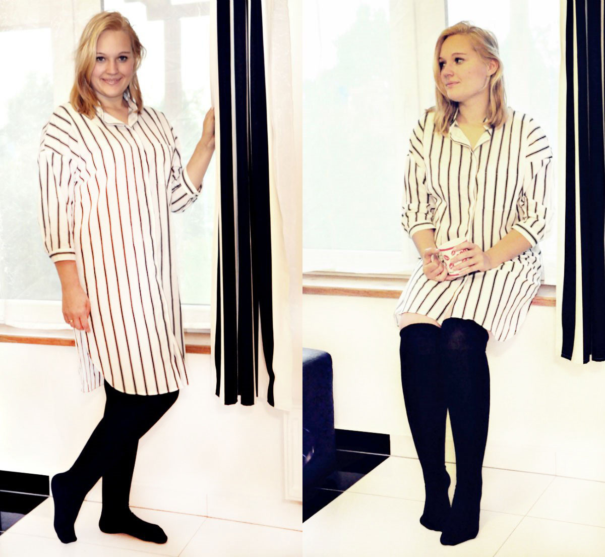 Zobacz oryginał czw., 13/10/2016 - 21:54Wiecie co jest podstawą każdej kobiecej garderoby, zresztą męskiej też? Z pewnością każda z Was szybko ten element ubioru znajdzie, bo ma go w ilości kilku sztuk. Mowa tutaj o skarpetkach. Może ten post wyda Wam się zabawny, ale tak na prawdę jest to niezbędna część ubioru. Bez nich nie wyobrażam sobie wyjścia z domu w botkach czy kozakach. Tak na prawdę skarpetki kupimy w wielu miejscach, ale w sklepie internetowym polskie-skarpety.pl możemy stworzyć własne, wybrać wzór, umieścić go w dowolnym miejscu na skarpetce i mieć produkt inny niż wszystkie. Nie kupimy takich w żadnej sieciówce ani na bazarze. Ja zdecydowałam się na wzór serca na białym tle oraz uśmieszka na szarym kolorze. Zerknijcie na zdjęcia, aby zobaczyć jak to fajnie wygląda. Wzór jest wykonany z delikatnych, miękkich cekin, wprasowanych w materiał i dość dobrze się trzymają nawet po kilku praniach. Przykładowe projekty znajdziecie tutaj. Ja jestem bardzo zadowolona z jakości, nie rozciągnęły się, są miękkie, bawełniane, kolor nie wyblakł i nie porobiły się żadne przetarcia. Do gustu przypadły mi również świetne, ciepłe zakolanówki, które są fajną alternatywą dla rajstop i na pewno nie raz założę je do kozaków lub botków. Z resztą po domu również fajnie się w nich chodzi. Poniżej kilka domowych zdjęć w pięknej, długiej koszuli z bonprix.pl. Niestety wieczór mnie zastał, bo jesienną porą dość szybko robi się ciemno. Ale myślę, że mini klimacik swobodnej atmosfery domowej, z kubkiem ciepłej herbaty udało się pokazać.