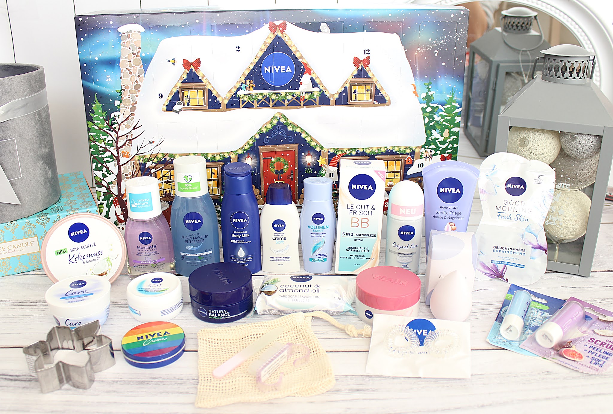 Poniżej zawartość kalendarza adwentowego Nivea:
