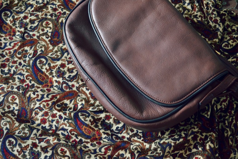 Nowościom ubraniowym poświęcę wkrótce osobny wpis, dlatego że odkryłam uroki garderoby basicowej i w taką się teraz głównie zaopatruję, przeciwstawiając ją wzorom, które zbytnio rozpanoszyły się w mojej szafie. Dzięki temu jestem w stanie prawie bezproblemowo połączyć swoje ubrania w zestawy (oczywiście w teorii, z poranną praktyką bywa różnie). Jednak tego wzoru na bluzce, który widzicie na zdjęciu nie mogłam przepuścić. Od razu skojarzył mi się z Williamem Morrisem. Bluzka była niezbyt ciekawa - miała jakiś dziwny golf z kołnierzem, ale szczęśliwie udało mi się ją przerobić, z pomocą cioci Włóczykija, na bluzkę z dekoltem na plecach. Skórzaną torebkę z kolei, udało mi się wyłowić w ciucholandzie za 15 ziko.