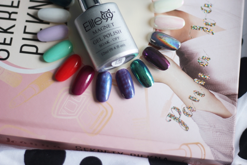 Od jakichś 4 lat robię sobie hybrydy, jednak nie mam imponującej kolekcji lakierów. Powoli przekonuję się do tych tanich, z chińskich stronek i zamówiłam sobie lakier z Elite99. Wybrałam taki z efektem kociego oka, magnetyczny. Po pomalowaniu drugiej warstwy, przed utwardzeniem, przykłada się na chwilę magnes, jakieś 1-2mm nad paznokciem. Opiłki znajdujące się w formule tworzą na płytce wzorki, efekt zależy od rodzaju magnesu - ja użyłam pierwszego lepszego, zdjętego z lodówki! Nawet be użycia magnesu lakier wygląda super, nie wiem tylko, czy jest trwały, bo nie nosiłam go jeszcze. Może macie taki i jesteście coś w stanie na jego temat powiedzieć?