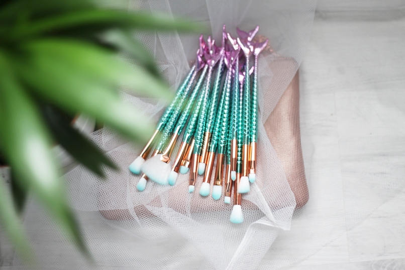 Zamówiłam też dwa zestawy pędzli rybek - jedne do konturowania, drugie do oczu (i ust, według mnie). Pędzelki są miękkie, zrobione z syntetycznego włosia, ale bardziej ładne, niż praktyczne. Chociaż ja już mam kilka ulubionych, które pomagają dobrze wyblendować cienie, właśnie dlatego, że są ekstremalnie miękkie.
