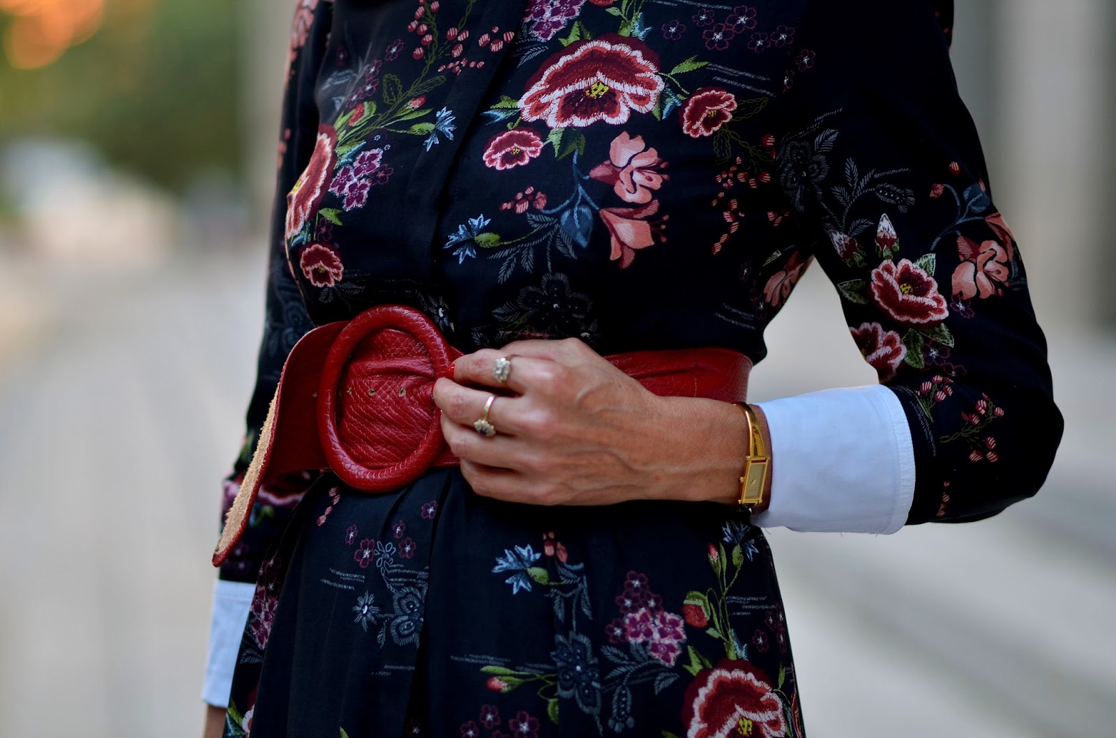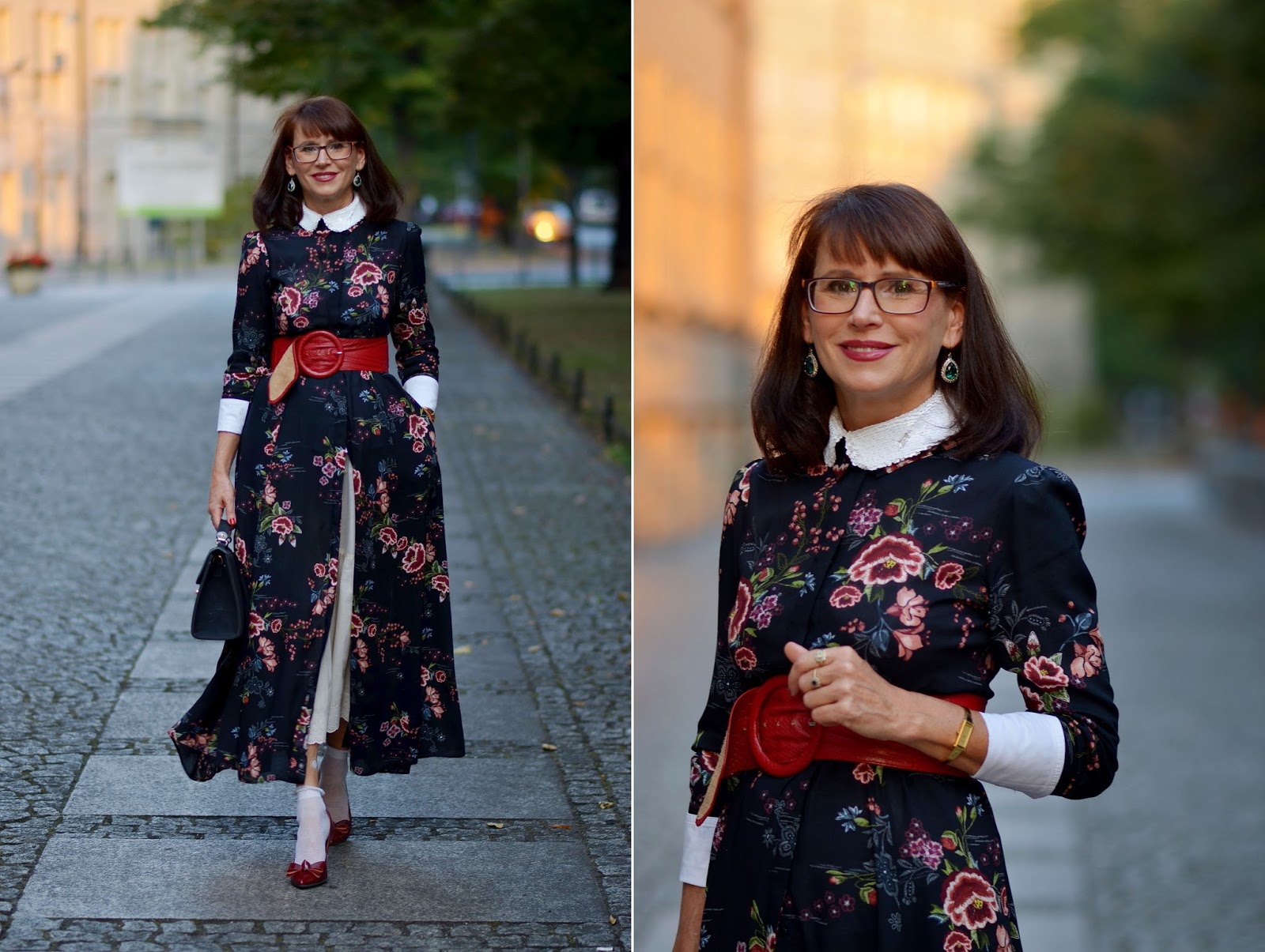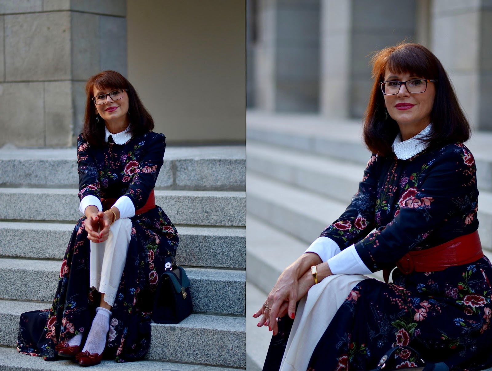 Sukienkę ubrałam na białą, koszulową bluzkę, tak, żeby miała biały kołnierzyk i mankiety. Taka stylizacja "chodziła" mi po głowie już od dłuższego czasu ale nie mogłam dostać tej właściwiej sukienki. Miała być długa, z długim rękawem, zapinana pod szyję. Szukałam jej przeszło trzy miesiące i moja wytrwałość została wynagrodzona. "Lepiej późno niż wcale" i oto jest :)