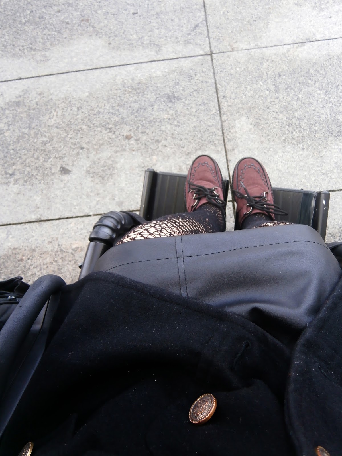 Tym razem do skórzanej sukienki, militarnej peleryny, w której chodzę całą zimę (nie, nie jest mi w niej zimno! czemu nikt mi nie wierzy? ;)) i creepersów postanowiłam dobrać kobiece dodatki - wspomniany już szaliczek i koronkowe rajstopy. Uwielbiam takie miksowanie stylu kobiecego ze wszystkim tym, co kocham w alternatywie. W końcu jestem kobietą! A to, że małą, wredną i pyskatą to już inna kwestia ;)
