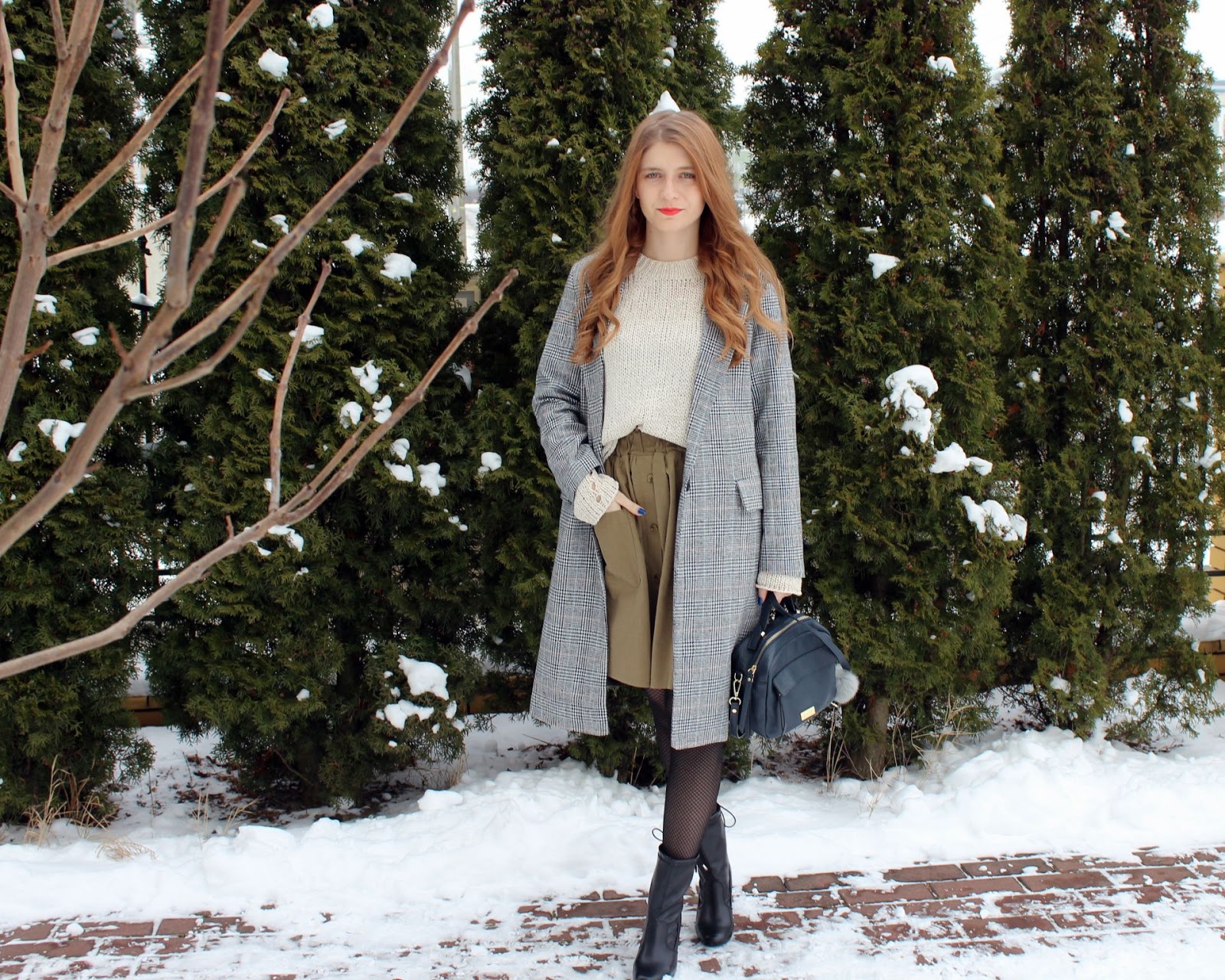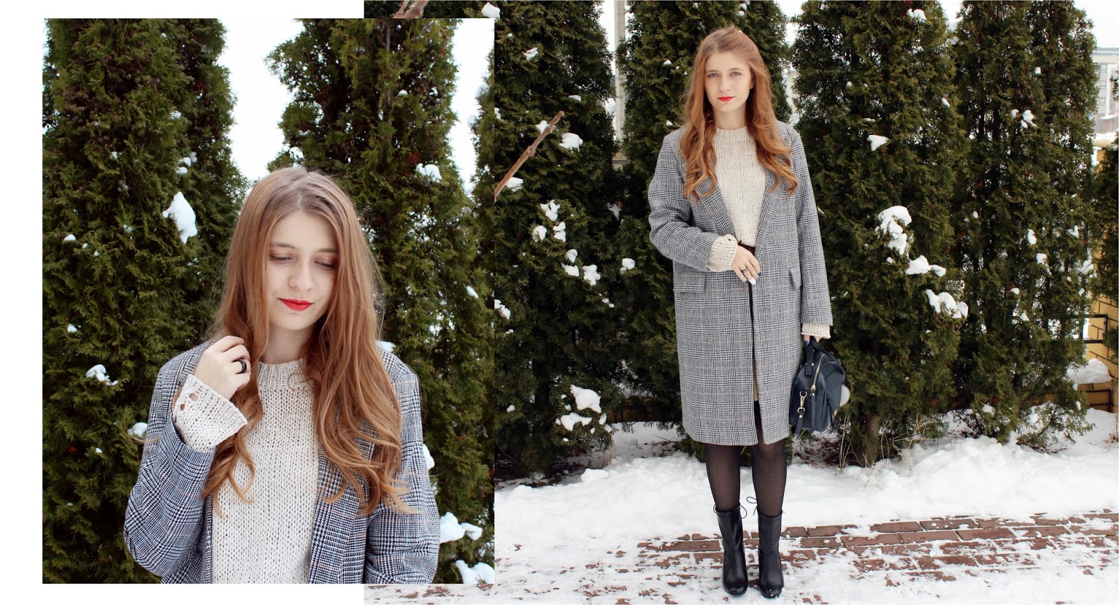 Nowy tydzień nowy zestaw. Jeszcze odrobina zimowej aury w tle, jednak ja już intensywnie myślę o wiośnie i się do niej przygotowuję. Dzisiejszy zestaw bez problemu możemy wykorzystać tak jak ja zimą, a także podczas cieplejszych, wiosennych dni. Spódniczka i sweterek to moje dwa łupy ze sklepu Gamiss. Co do dołu, była to dla mnie wielka niewiadoma, gdyż nie wiedziałam jakiej długości się spodziewać. Ostatecznie, spódnica jest świetna i do tego na podszewce. Płaszczyk to niekwestionowany hit sezonowy pod względem motywu. Krata królowała jesienią, zimą i jestem pewna, że tak szybko Nas nie opuści. Płaszczy znajdziecie na Zaful. Sama nie wiem co jest największą nowością w tej stylizacji, na uwagę zasługują również botki. Moje pierwsze buty z Bon Prix i powiem Wam, że jestem bardzo zadowolona. Przy wyborze botków kierowałam się w dużej części komentarzami innych klientek i zgadzam się z nimi w 100%. Botki są lekki i naprawdę wygodne. Nie czuć, że ma się buta na stopie. Jednak są typowo na wiosnę- jesień.