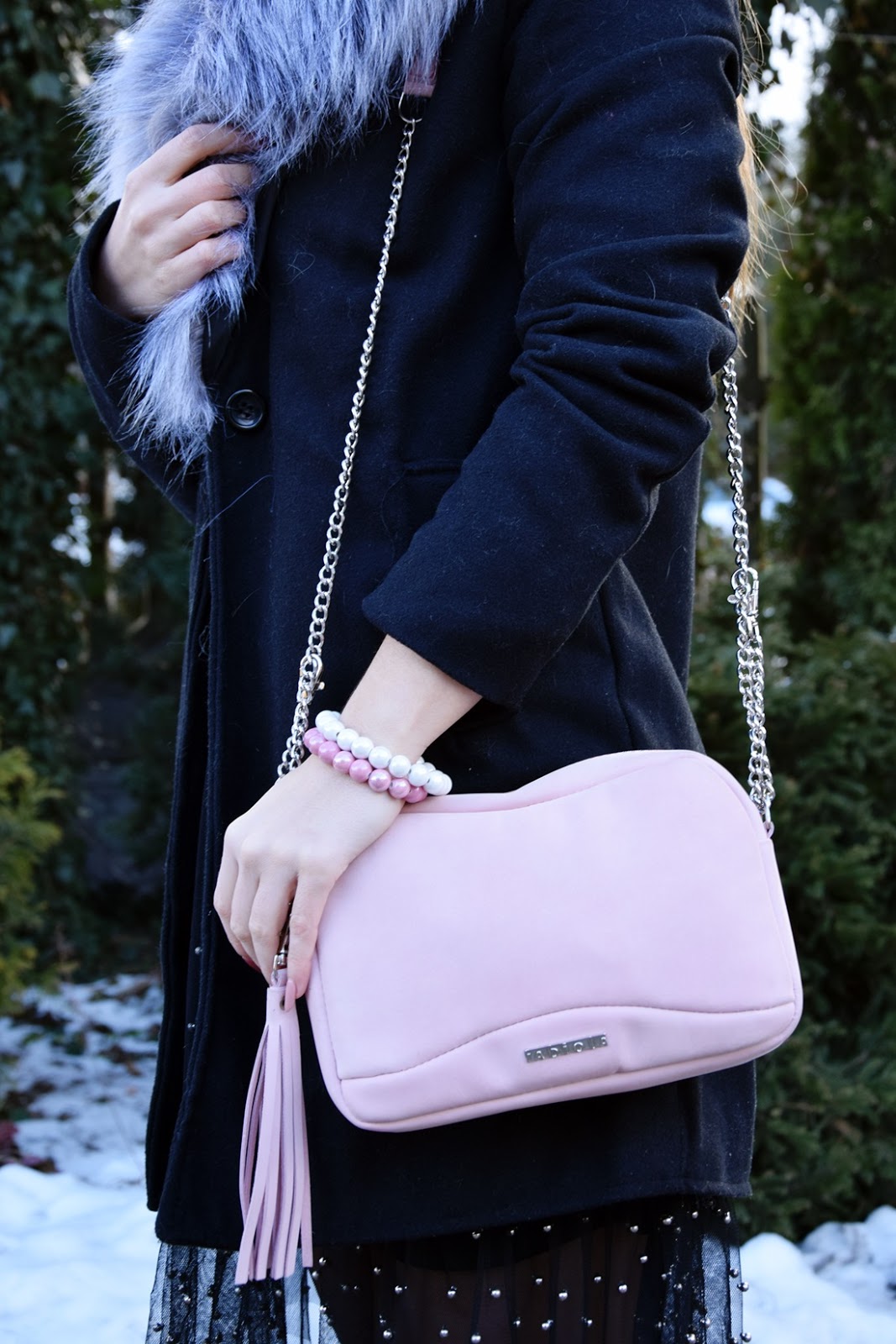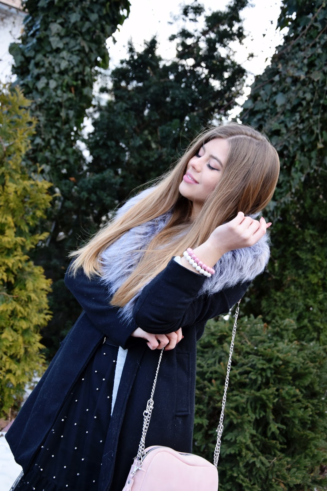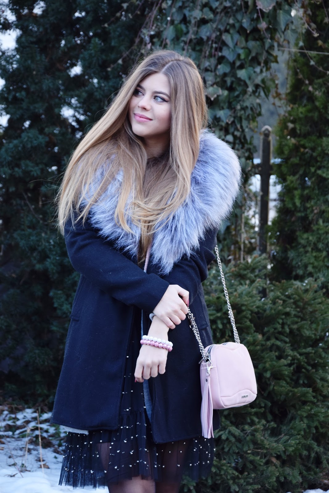 Zobacz oryginał czw., 22/02/2018 - 18:16Hej Kochani! Dzisiaj przychodzę do Was z kolejną biżuterią ze sklepu Dedicante, o którym wspominałam w poście TU, TU, TU :) Tym razem są to porcelanowe bransoletki w kolorze różowym i białym. Miałam już podobne tylko z zawieszką, jednak tym razem postawiłam na klasykę w pastelowych kolorach. Co do stylizacji to niewątpliwie na pierwszym planie widzicie mój płaszczyk. Ma on już rok, wisiał w szafie i całkiem o nim zapomniałam :D Sam płaszczyk bardzo mi się podoba, jednak strasznie przyciąga wszystkie włoski i paproszki -> i pomimo, że czyściłam go przed wyjściem nadal są widoczne na zdjęciach :( Pod spód sukienka z metalowymi perełkami, sweterek (który nieśmiało wystaje spod płaszcza), buty na platformie i torebka Fabiola (niedługo minie dwa lata odkąd ją mam, a nadal wygląda jak nowa <3) :) Jak Wam się podoba?