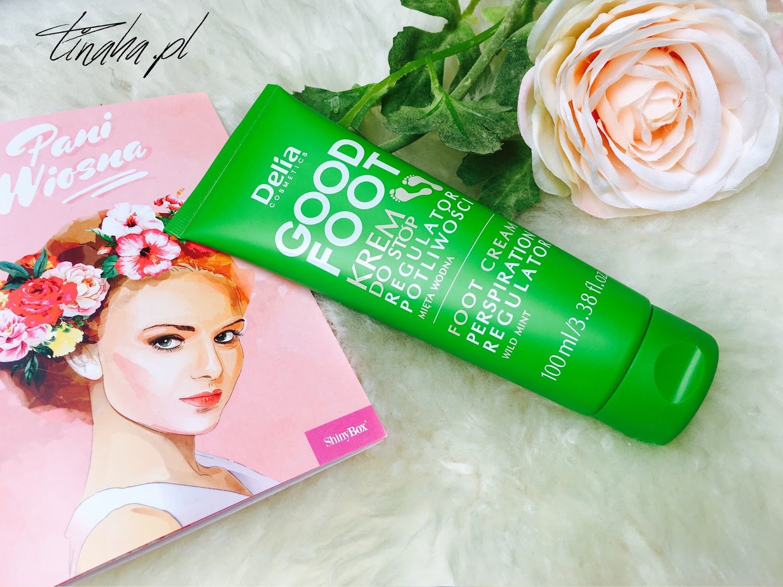 Kolejne kosmetyki wywołały już mniej entuzjazmu na mojej twarzy. Wśród nich znajduje się krem do stóp marki Delia. Jednak już samo jego opakowanie przypomina mi produkt z poprzedniego pudełka jakim były kule do stóp tej samej marki, które okazały się totalnym niewypałem ( recenzja niebawem ). Ponownie jest to pełnowymiarowy produkt, którego zadaniem jest regulacja nadmiernej potliwości stóp oraz utrzymanie efektu świeżości. Cena w granicach 6,50 pln.