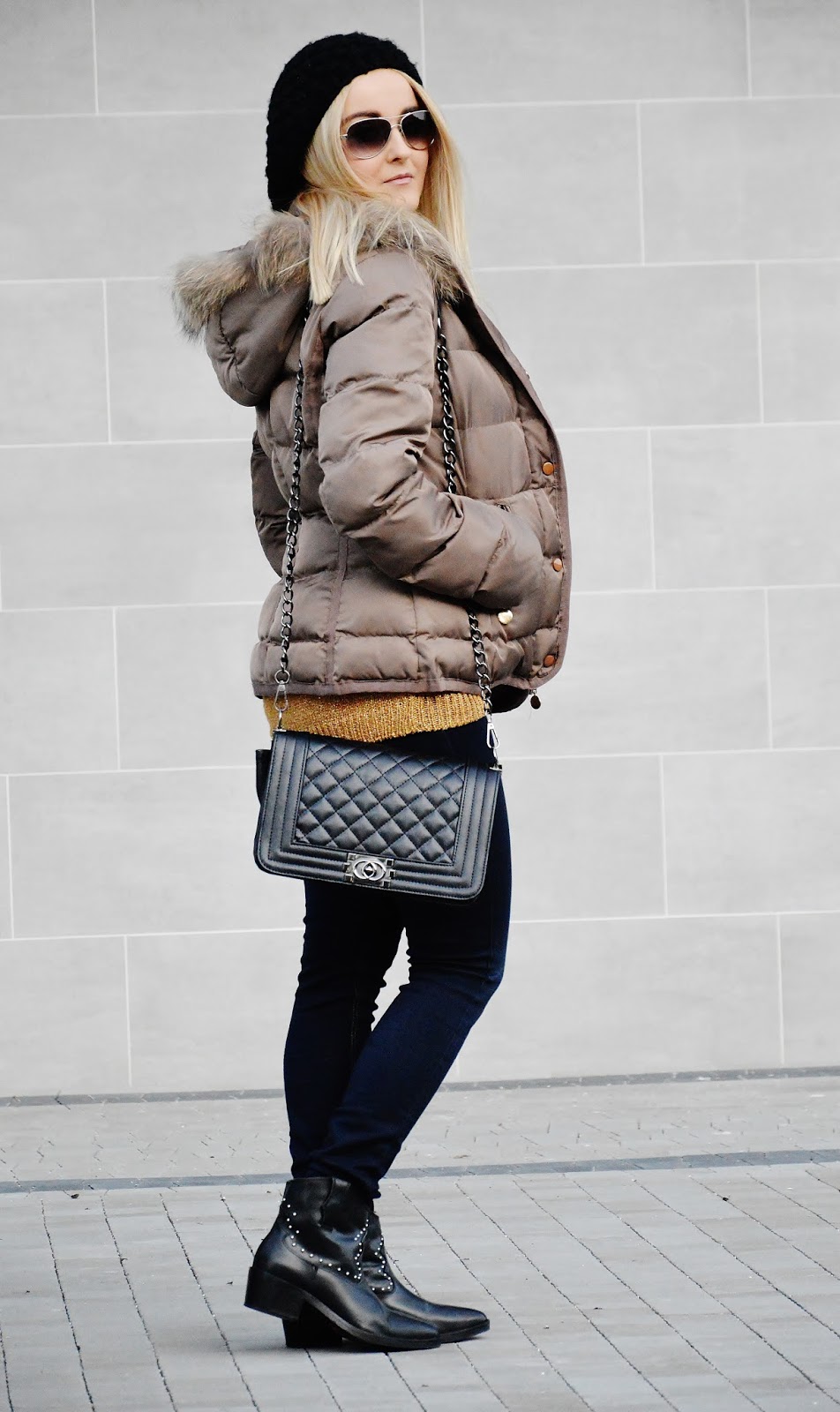 Jacket- Vila / Sweater- No name / Jeans- Cubus / Bag- Deal Sale / Sunglasses- Chanel / Beret- Carry / Shoes- Mango