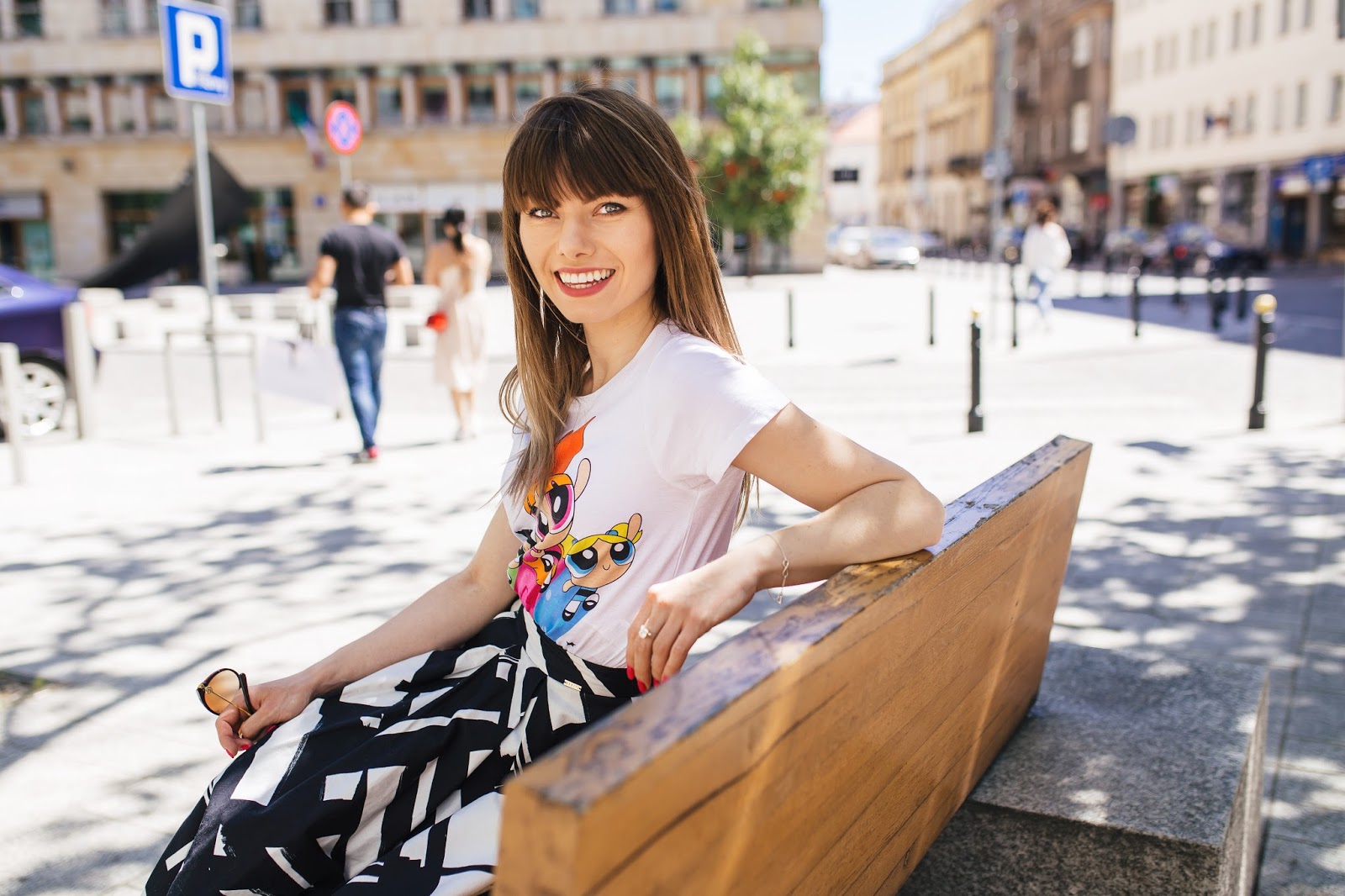 Stylizacja, którą dla Was na dzisiaj przygotowałam to połączenie paryskiego szyku z dziewczęcą kokieterią. T-shirt z postaciami z kreskówki doskonale sprawdza się w tym eleganckim połączeniu. Dodałam do niego wzorzystą spódnicę w starym stylu oraz śliczne klasyczne szpilki. Przyznam nieskromnie, że wyszło naprawdę nieźle! Dziewczyny! Nie bójcie się eksperymentować i łączyć style! Bierzcie przykład z Paryżanek :)