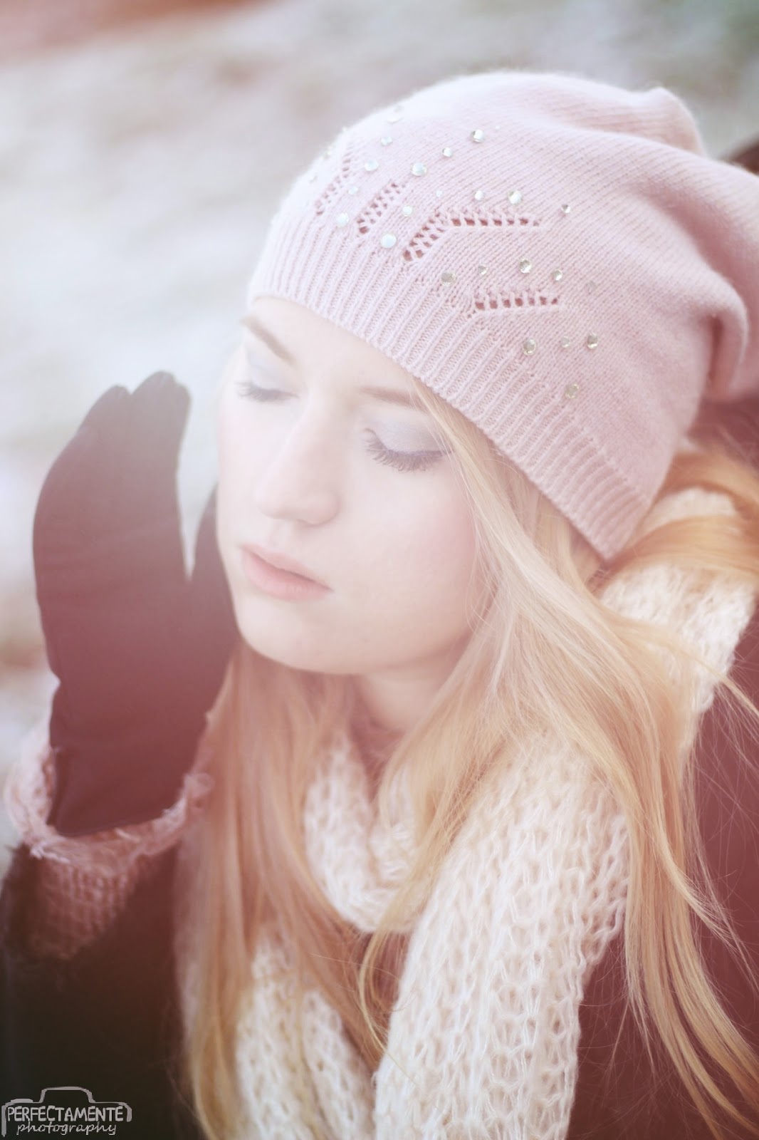 Na przekór krótkim dniom wybieram pastele i gram w kontrasty. Delikatną koronkową sukienkę z oferty Inspire Me zestawiam z ciężkim, czarnym kożuszkiem. Dodatki wybieram delikatne, dziewczęce, trochę na przekór seksownym i wyrazistym butom. Grubą włóczkę szala zestawiam z cudnym naszyjnikiem znalezionym w szkatułce mojej mamy. Pochodzi on z czasów, gdy była w moim wieku, jeśli nie młodsza. Delikatną czapkę kontrastuję z czarnymi rękawiczkami.