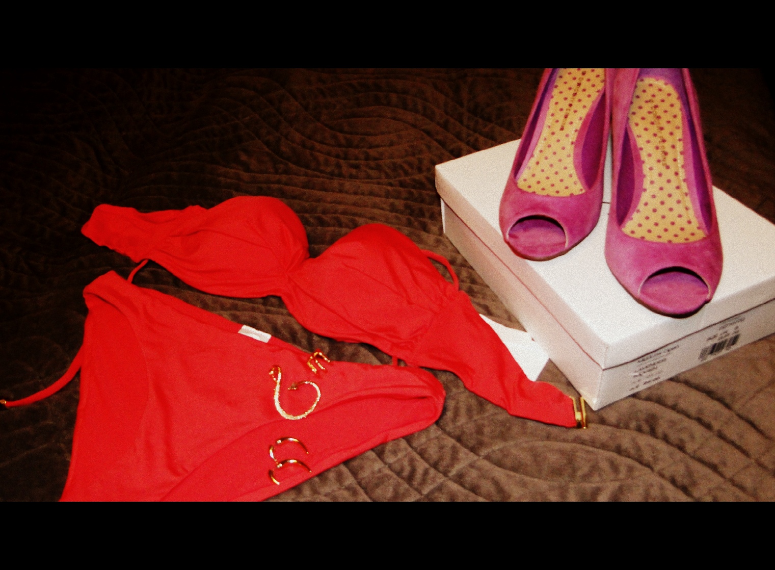 Najnowszy zakup to amarantowe szorty i czerwony strój kąpielowy z H&M, lawendowe buty od Dorothy Perkins, nowa "biżu" z Allego.