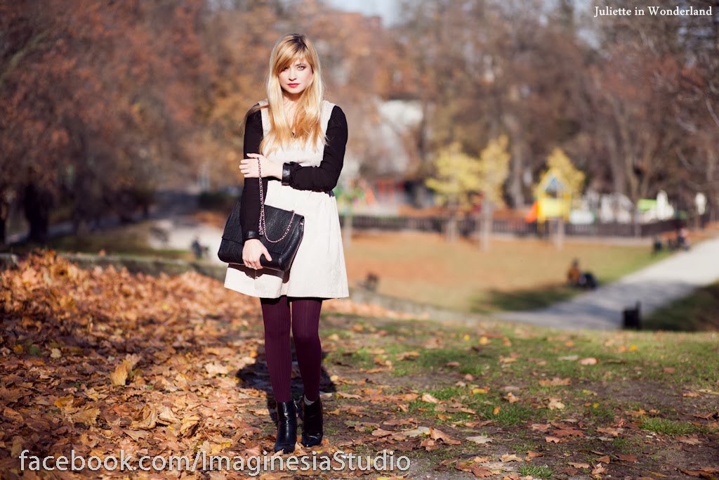 Zobacz oryginał czw., 14/11/2013 - 18:00Stylizacja utrzymana w ciepłej kolorystyce, burgund, beż i czerń, czyli jedno z moich ulubionych połączeń kolorystycznych. Pod beżową sukienkę z Persunmall założyłam czarną koszulę że skórzanymi elementami. Burgundowe rajstopy idealnie komponują się z kolorystyką kolczyków.