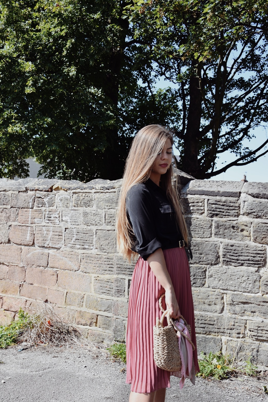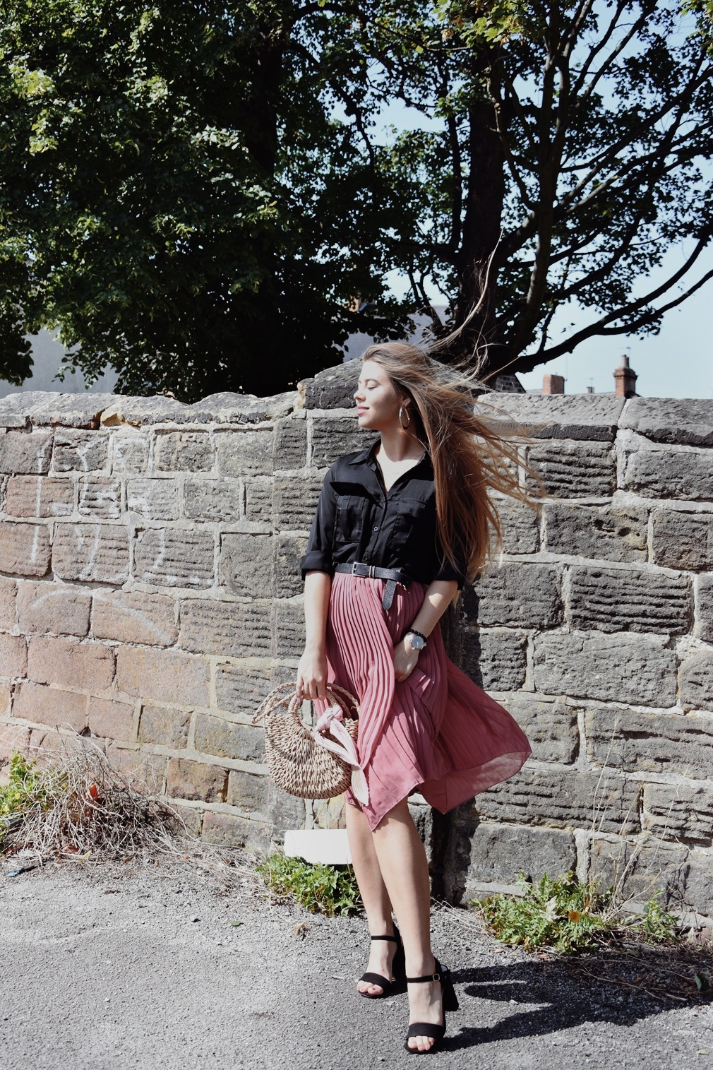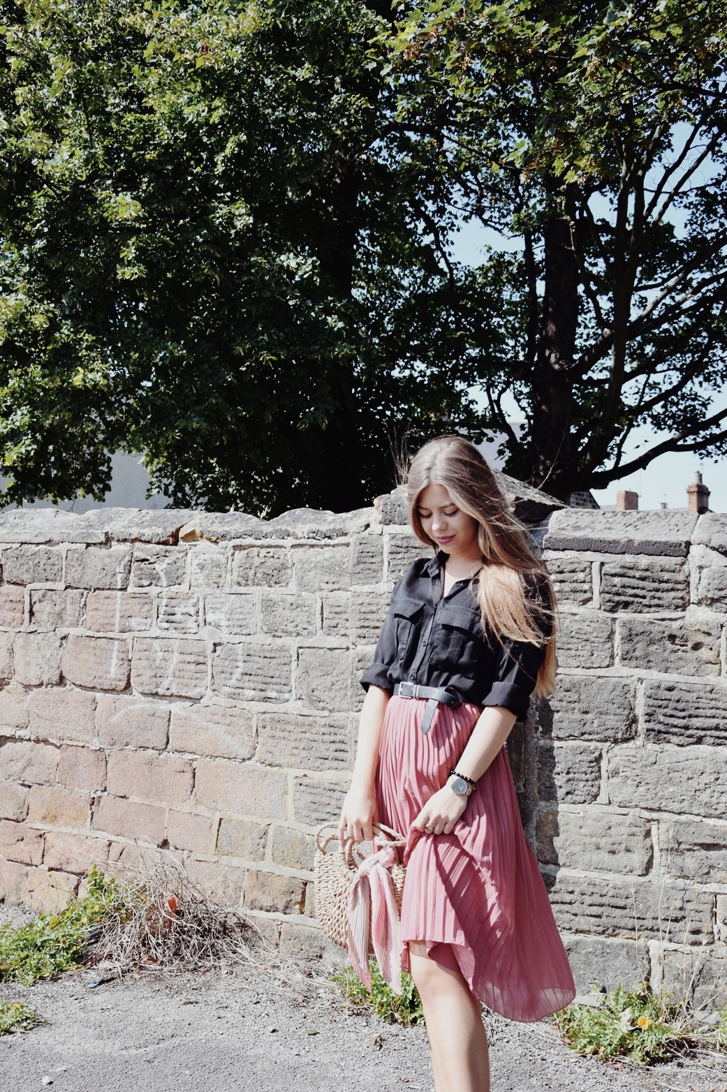 Zobacz oryginał pt., 30/08/2019 - 14:11Hej ❤️ Dziś po raz kolejny prezentuję Wam rzeczy ze sklepu NA-KD i po raz kolejny jestem zachwycona jakością jak i wyglądem tych ubrań. Tym razem mój wybór padł na plisowaną spódnicę midi i czarną, satynową koszule z kieszeniami. W połączeniu z sandałkami na obcasie zestaw wygląda elegancko i jest odpowiedni na ważną rodzinną uroczystość, bądź wyjście do eleganckiej restauracji lub nawet do pracy (o ile nie wymaga ona od Was odpowiedniego dress codu). Zmieniając obuwie na płaskie śmiało można sie tak ubrać na co dzień :) Po raz pierwszy skusiłam się na długość spódnicy za kolano i nadal nie jestem do tego wyboru przekonana. Jednak kobiety obdarzone długimi nogami w takiej spódnicy wyglądają o niebo lepiej. Jak Wam się podoba taki look?