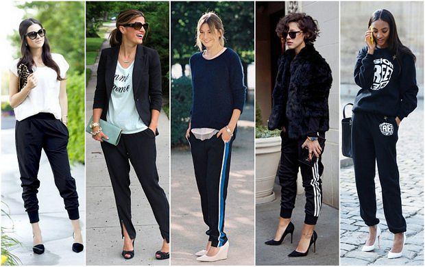 Modne są spodnie z lampasem te bardziej eleganckie jak i te typowo sportowe łączone oczywiście z elegancką garderobą bardzo często ze szpilkami.