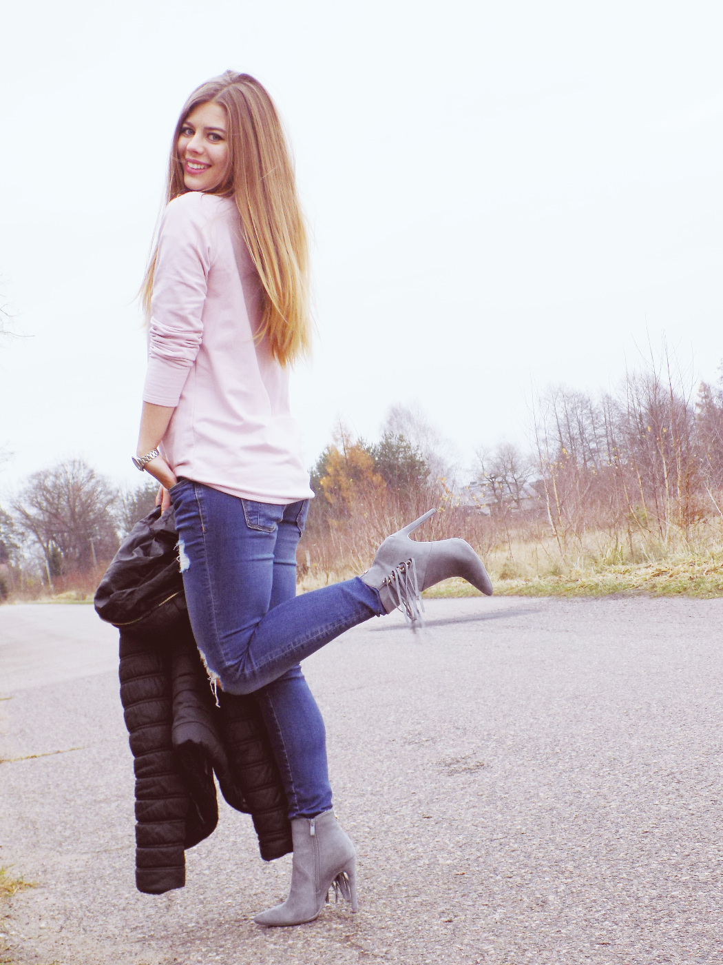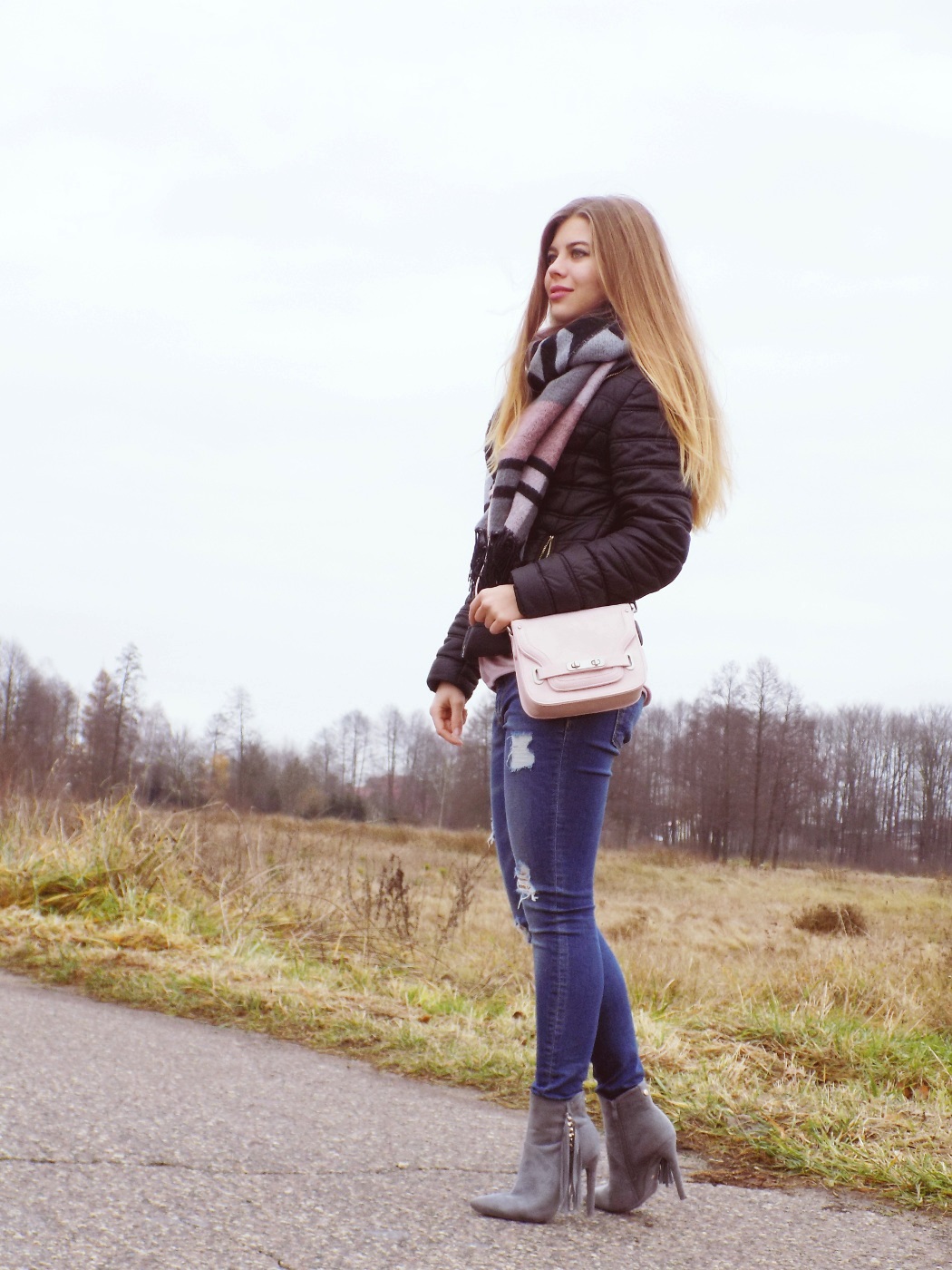Zobacz oryginał ndz., 20/11/2016 - 20:34Hej Kochani. Dzisiaj przygotowałam dla Was codzienną stylizację. W zasadzie miałam już jej nie dodawać, ale nie chcę Was zostawiać bez zdjęć przez kolejny tydzień. Perełką tej stylizacji jest przede wszystkim torebka ze sklepu Gamiss. Po raz kolejny jestem zadowolona z asortymentu, kontaktu jak i jakości. Torebka jest idealnie uszyta, nie ma kleju, nie pruje się, nie ma specyficznego zapachu typowych chińskich ciuszków . Jest naprawdę świetna. Jakby tego było mało ma przepiękny pudrowy odcień, który zawsze jest mile widziany w moje garderobie. Do tego bluza, spodnie z przetarciami, ciepły szalik, pikowana kurtka i botki. Za bluzami nie przepadam, jednak po zobaczeniu takiego pudrowego cudeńka z Myszką Miki musiałam ją mieć. Jest z przyjemnego materiału, lekko ocieplanego i już wiem co będę zakładać w mroźne, zimowe dni. A cekiny ułożone w kształcie myszki są ruchome i w zależności od naszego nastroju mogą być białe albo czarne :) Jak Wam się podoba taki look?