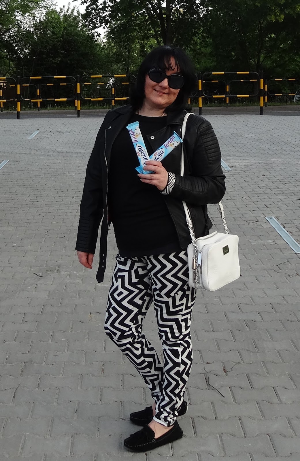 Ja kupiłam widoczną na fotkach kurtkę. Ma fajny krój i ciekawą czerwona podszewkę. Wzorzyste leginsy przykuły moją uwagę w H&H. Torebka pochodzi z Mohito. Zawsze lubiłam duże torebki. Sama nie wiem dlaczego ale ostatnio moja uwagę przyciągają te mniejsze. Ta już stała się ulubiona chociaż bardzo szybko się brudzi.