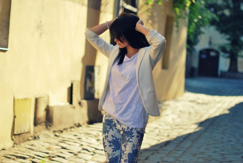 spodnie -Tutaj, bluzka -Choso, marynarka -Sheinside, bransoletki -LocaUnique, bydziubeka