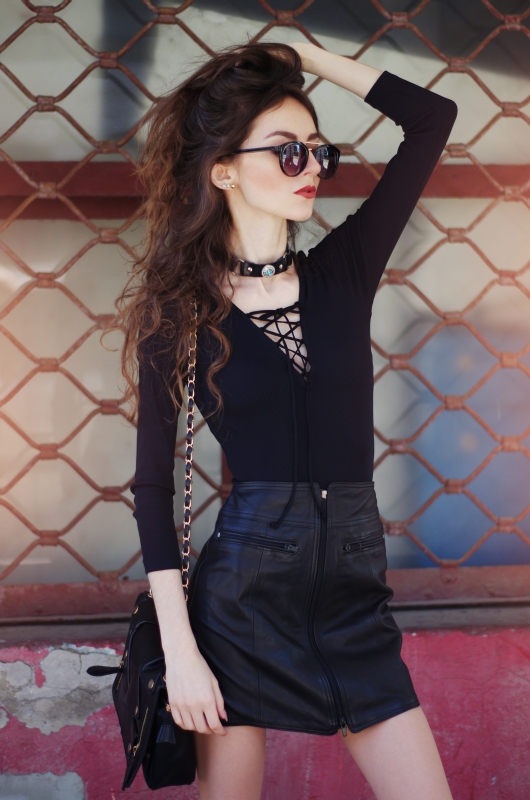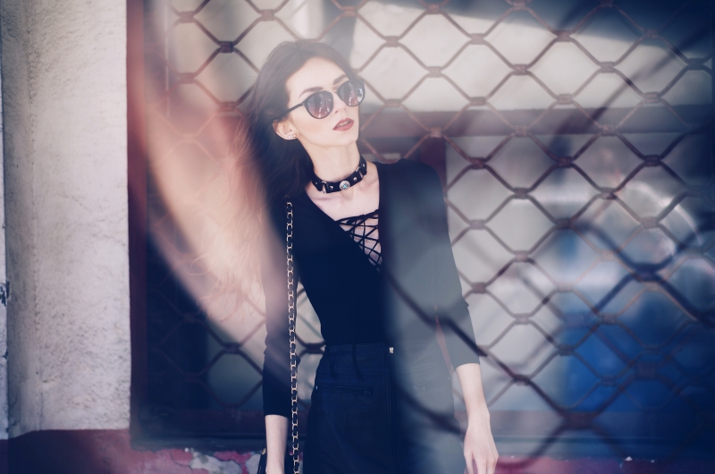 / chocker- shellkey.pl/ jacket, body- h&m/ bag- lovelywholesale.com/ shoes, skirt- @/ sunglasses- i am/