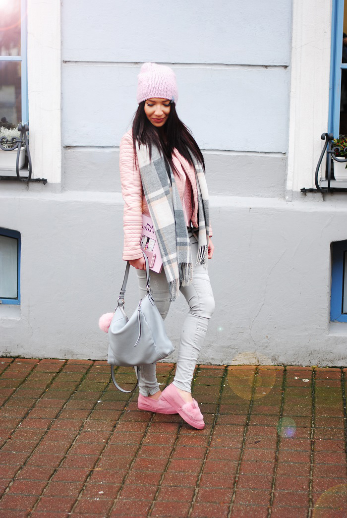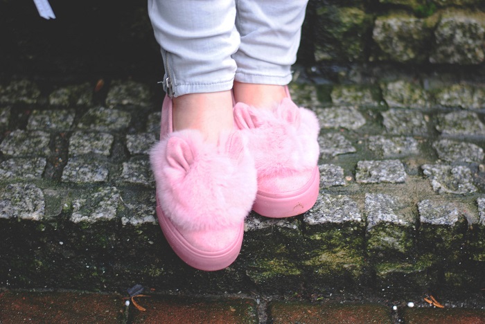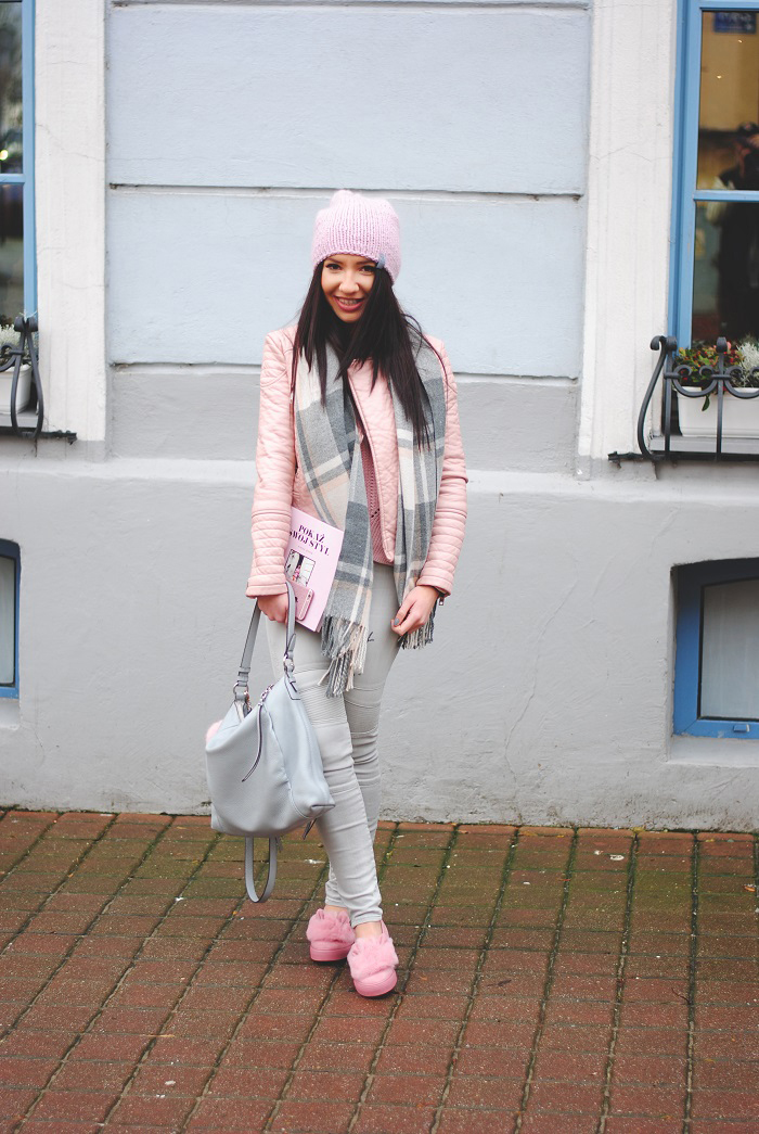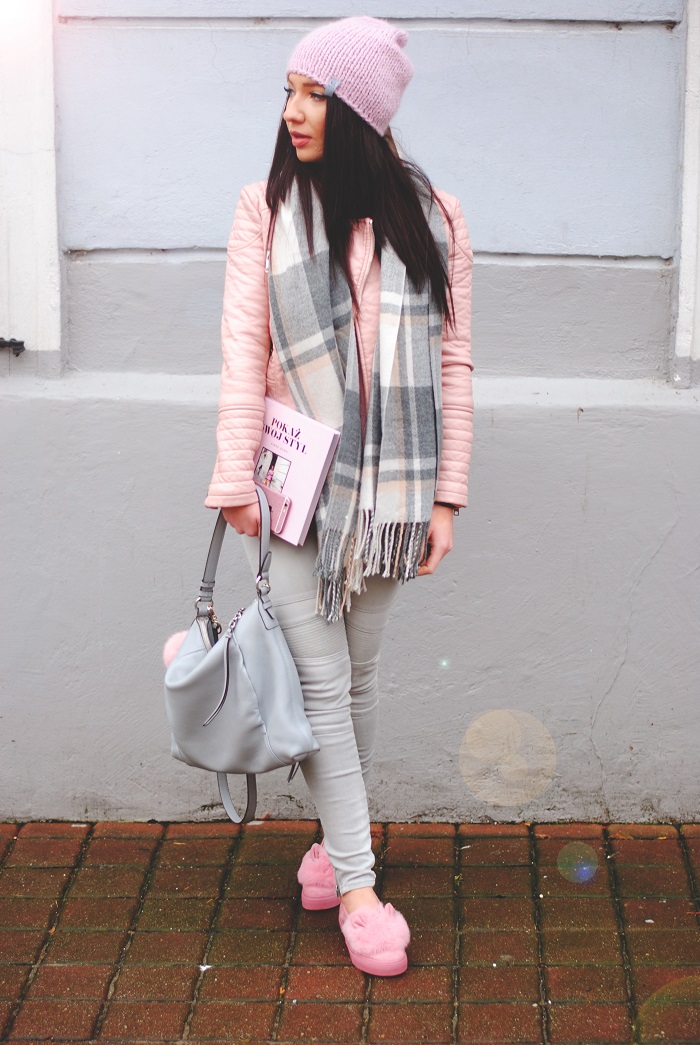 Po kilku dniach choroby w końcu mogłam wynurzyć nos z domu i przygotować dla Was kolejny post. Dawno nie było u mnie płaskich butów a tym bardziej nie było stylizacji w spodniach, ze względu na chorobę też wolałam nie ryzykować i spodnie były najbezpieczniejszą opcja. Do tego oczywiście grubszy wełniany sweter i grubsza kurtka - wszystko w kolorze różowym, tak szaleje za wszystkim co jest w kolorze baby pink ! Jeśli śledzicie mnie na instagram & snapchat miałyście szanse już zobaczyć te piękne futrzane, króliczkowe slip- ony które podbiły całego instagrama ! Moje serce skradły jak pojawiły się w sklepie DeeZee i od razu pojawiły się w koszyku :p Na zdjęciach możecie też zobaczyć książkę którą dostałam wczoraj od mojego cudownego chłopaka i od wczoraj nie mogę się z nią rozstać, jest na prawdę mega fajna i mogę wam ją z całego serca polecić oczywiście jeśli interesujecie się modą tak jak ja.