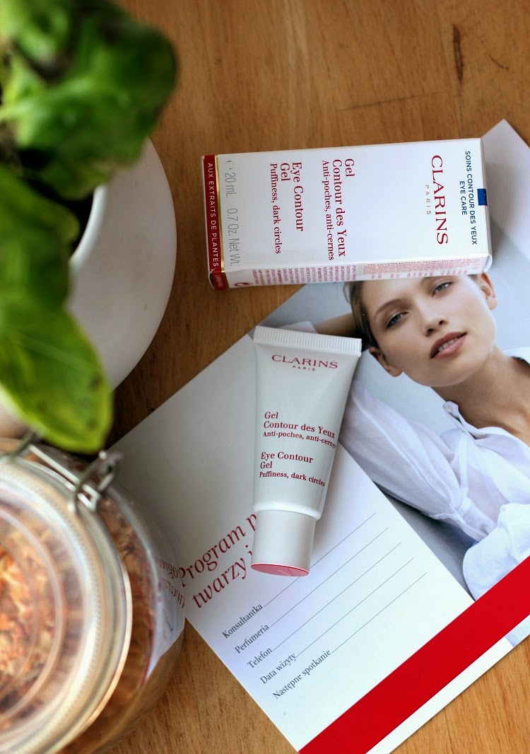 Cienie pod oczami to jeden z tych problemów mojej skóry twarzy, z którymi zmagam się niemal od zawsze. Na rynku można znaleźć wiele kosmetyków, które pomagają w redukcji tej przypadłości. Niska cena jak i pozytywne działanie nie zawsze idą w tym wypadku w parze, natomiast mi udało się znaleźć kilka produktów, które "w miarę" godzą ze sobą te dwie kwestie. Jednym z nich jest właśnie Clarins Contour des Yeux - żel pod oczy. Kupiłam ostatnio ten żel za namową konsultantki i specjalnie dla Was dzielę się zatem swoją opinią o tym kosmetyku. Ponoć żel miał zmniejszać cienie pod oczami i opuchliznę, odświeżać, łagodzić oraz działać kojąco.