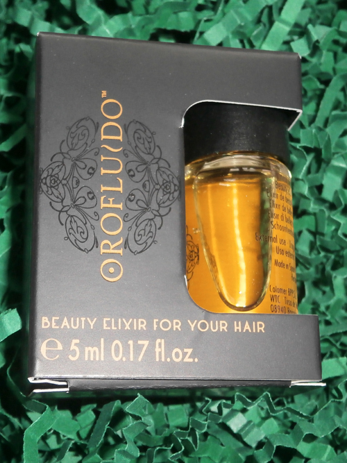 I na koniec - eliksir do włosów. W konsystencji przypomina tłusty olejek. Mam przetłuszczające się włosy, więc spodziewałam się samych złych efektów. Na szczęście pomyliłam się - eliksir Orofluido jest genialny! Tuż po nałożeniu włosy wydają się tłuste, więc można się wystraszyć ;), ale po chwili stają się miękkie i błyszczące, nawilżone, cudowne. Produkt Orofluido przy tym bardzo ładnie pachnie i jest wydajny. To jedyny kosmetyk w pudełku, z którego jestem naprawdę zadowolona. Tylko czemu znowu miniatura?!