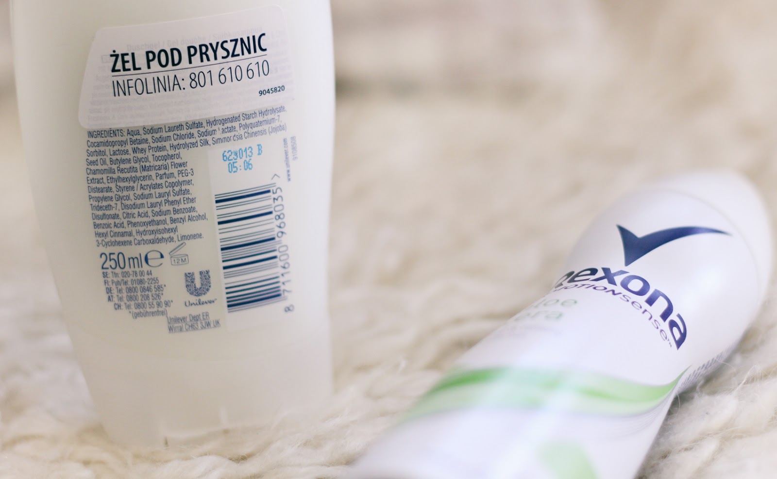Produkty same w sobie małą fajne, poręczne opakowania. Jedyne, do czego bym się doczepiła, to ogromna naklejka na żelu pod prysznic z numerem infolinii. Z ciekawości, pytanie do Ciebie: czy kiedykolwiek zadzwoniłaś na infolinię kosmetyczną? Jeśli tak - w jakim celu? Daj znać w komentarzu, ponieważ nurtuje mnie to niesłychanie.