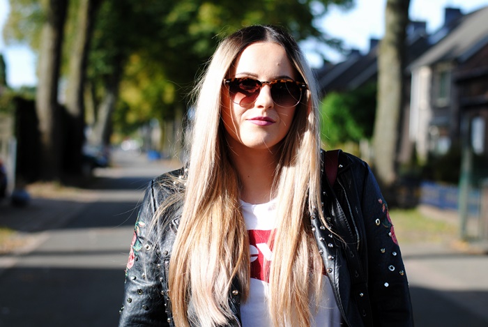 Moje kochane ramoneski - aktualnie w szafie mam ich (tylko lub aż?) trzy. Jedną, moją ukochaną widzieliście w tym wpisie, natomiast dzisiejsza jest także dla mnie wyjątkowa, bo z motywem róży, kwiatu, który niesamowicie kocham. Róże mam wytatuowane na ciele, róże kocham dostawać (lub nawet sama dla siebie kupować, aby ozdabiały mi salon), ale także kocham je na ubraniach. Ten kwiat jest piękny, delikatny, ale ma też kolce. Pasuje do pięknej zwiewnej sukienki i do rockowej ramoneski. A że ja lubię uniwersalność i ponadczasowość...