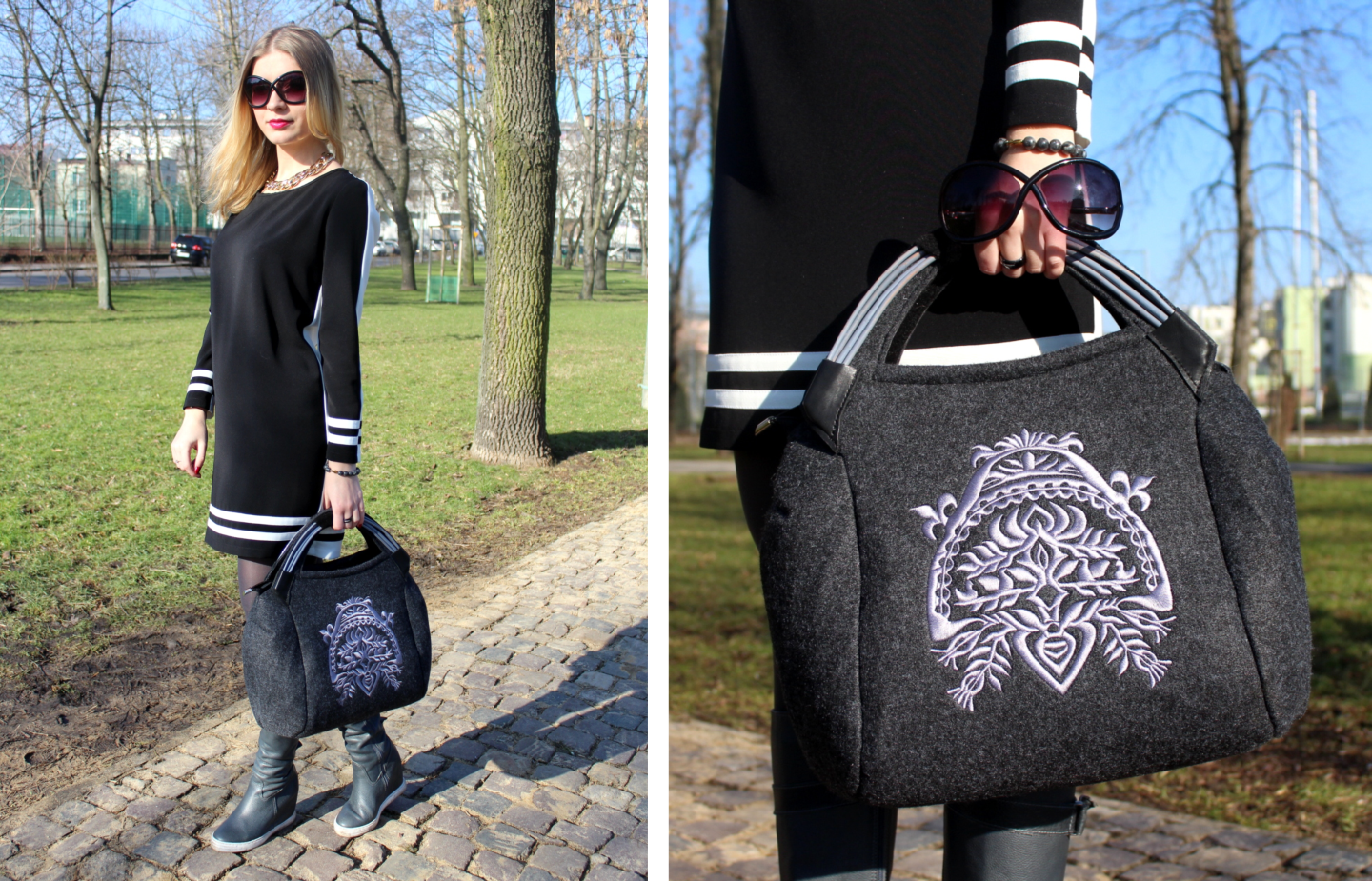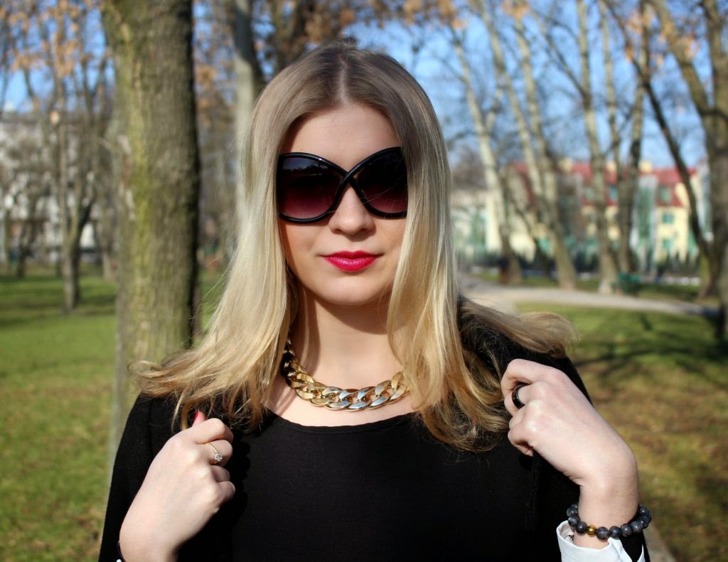 Zobacz oryginał sob., 21/02/2015 - 22:41Ze śniegu z ostatniego wpisu ani śladu, wkracza wiosna i oby tu została! Dzisiejszy zestaw jest klasyczny, to połączenie czerni, bieli i szarości. Sukienkę od ArmyGetsDown, którą już znacie, uwielbiam ją, pasuje na każdą okazję, zestawiłam z moimi hitami tej zimy, czyli sneakers-ami na koturnie od BOOCI i moją wielką nowością- filcową torebką Fabiola. Jest genialna- pojemna, bardzo pojemna, a co najważniejsze, jest lekka sama w sobie, dlatego można do niej dużo rzeczy schować :) Do tego naszyjnik od Amber- klasycznego 'łańcucha' jeszcze w mojej szafie brakowało, oczywiście bransoletka z kamieni, tym razem szary model od Gemma i cudowne okulary przeciwsłoneczne od eOkulary. Moja mała kolekcja okularów przeciwsłonecznych powoli się powiększa, marzyłam od tym, tak naprawdę od momentu założenia okularów korekcyjnych :) Do tej pory mam schowane małe okulary przeciwsłoneczne z dzieciństwa ;) Te są rewelacyjne, bardzo nowoczesne, a takich 'much' dosyć długo szukałam ;) A Wam jak się podobają?