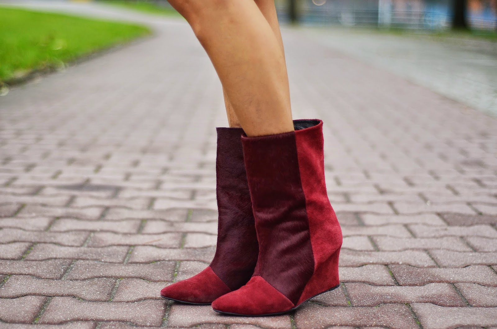 Dzisiejsza stylizacja to kolejne podejście i tym razem postanowiłam wykorzystać ją w dziennym look'u. Bluzkę nałożyłam na cekinową spódniczkę. Dzięki temu "wyciszyłam" ją i wydłużyłam. Bordowy sweterek i buty świetnie uzupełnijąa całość kolorystycznie. Skórzany kołnierzyk już znacie, to mój pomysł i wykonanie. Przyznam Wam się, że bardzo jestem zadowolona z tego zestawu!