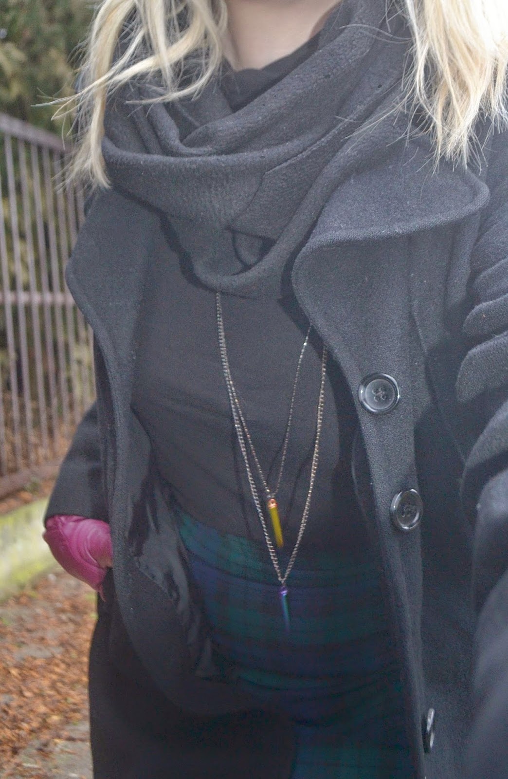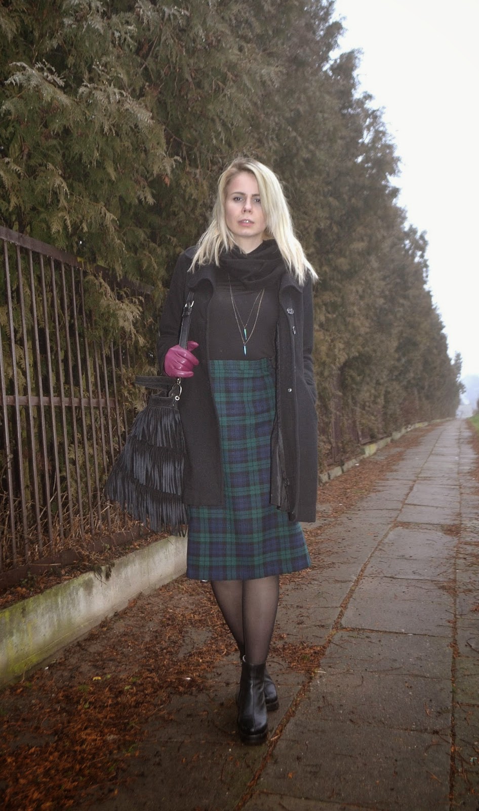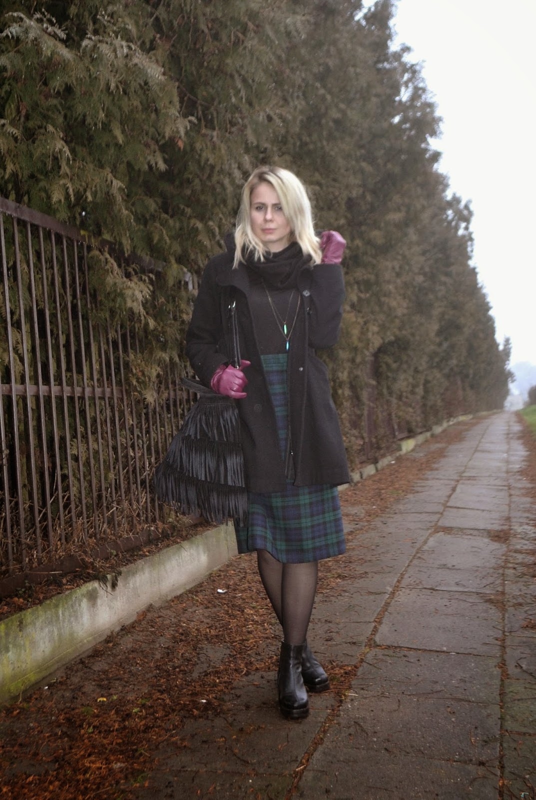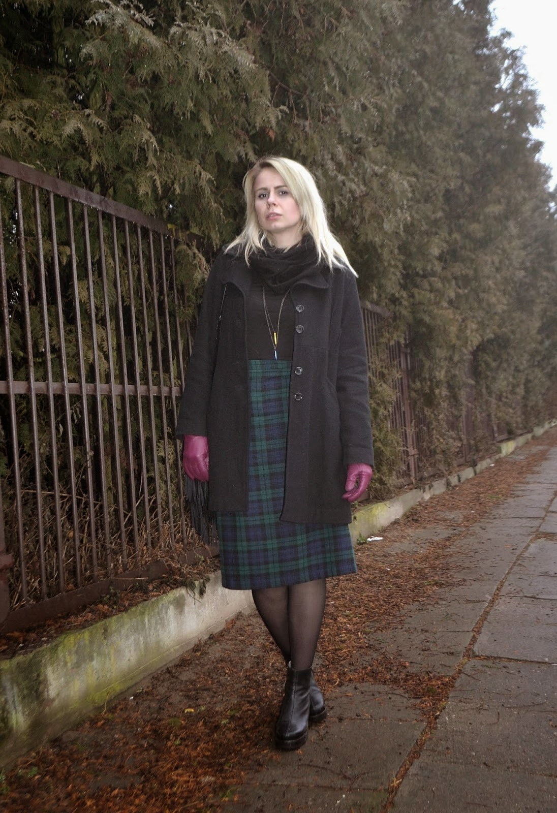 spódnica, płaszcz_ SH/ golf_H&M/ buty_BRUNO SCHUTZ/ torebka_NEW LOOK/ wisiorek_SINSAY
