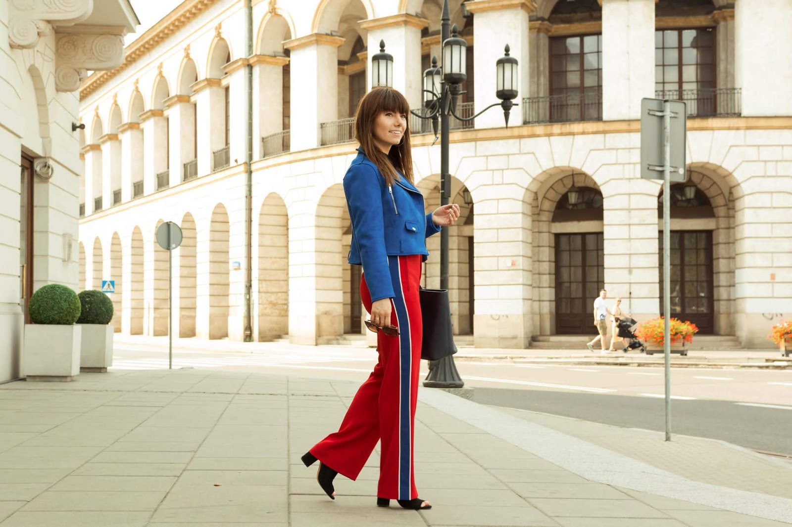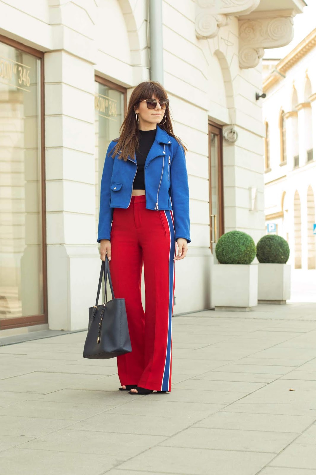 W tym sezonie zapomnij o szarych rurkach i zainwestuj w jakieś szalone spodnie. Ja swoje wyciągnęłam z szafy i pokochałam ponownie. Czerwone z wysokim stanem - robią całą stylizację, ale nie byłabym sobą jeśli nie zestawiłabym ich z jakimś szalonym nakryciem wierzchnim ;)
